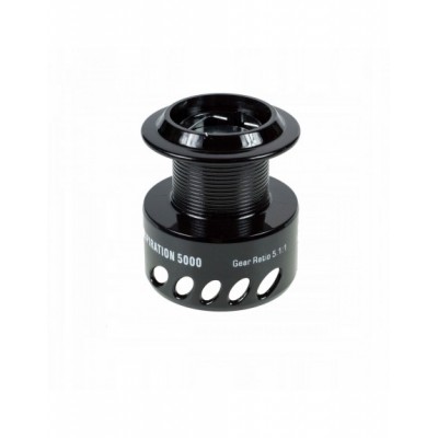 Szpula główna aluminiowa typu long cast. Składana korbka z wygodnym uchwytem wykonanym z tworzywa sztucznego. System wolnego biegu szpuli i precyzyjny system układania żyłki. Komputerowo wyważony rotor, tytanowe pokrycie rolki.