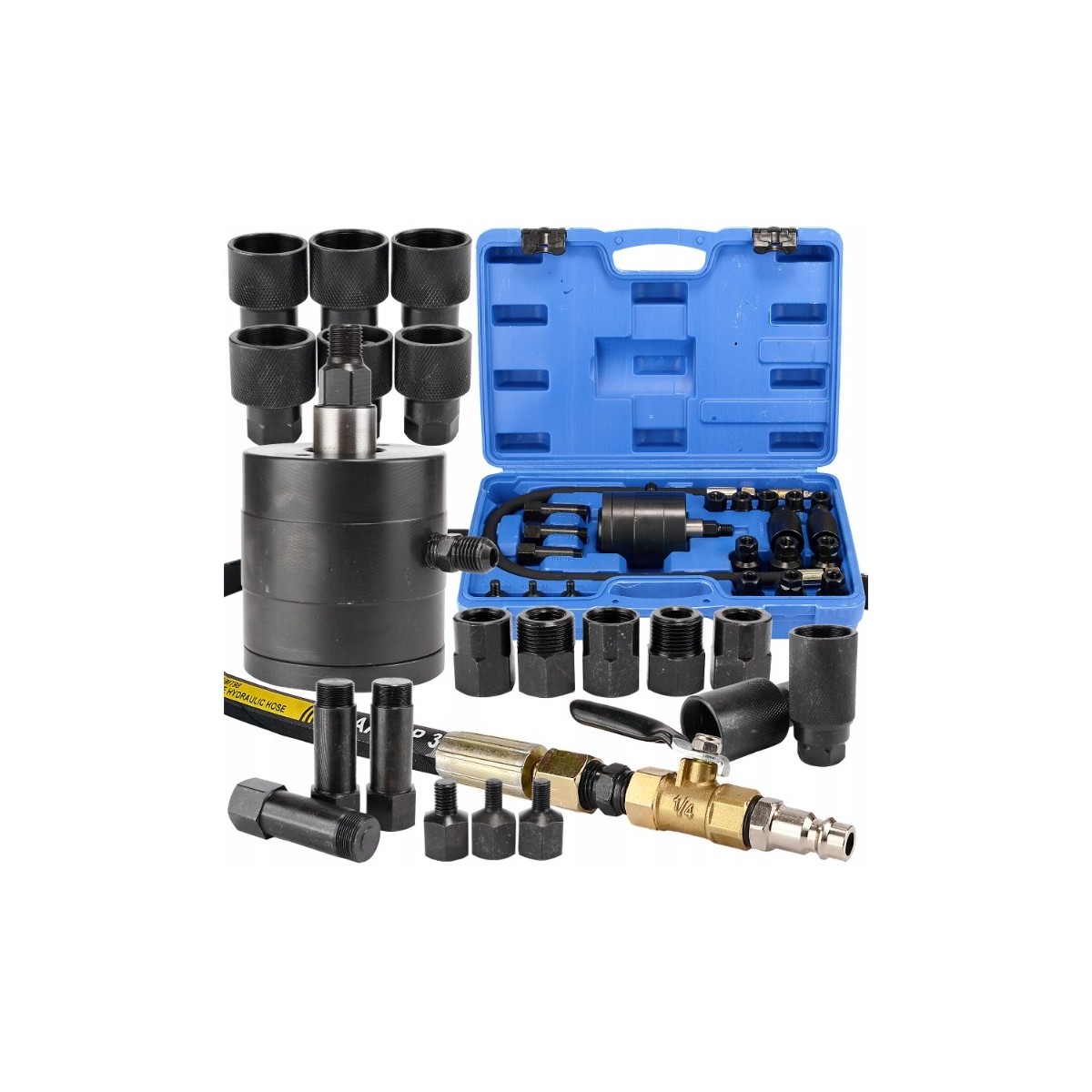 Pneumatyczny ściągacz do wtryskiwaczy to narzędzie niezbędne w pracy każdego warsztatu specjalizującego się w naprawach systemów paliwowych. Dzięki zastosowaniu siły pneumatycznej, ten ściągacz umożliwia skuteczne i bezpieczne wyciąganie wtryskiwaczy, minimalizując ryzyko uszkodzenia delikatnych elementów silnika. Jest to narzędzie pozwalające na efektywną pracę w trudnych warunkach warsztatowych.