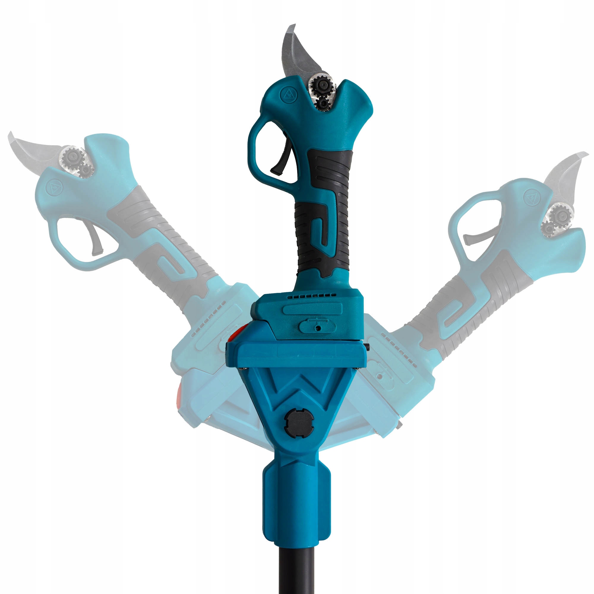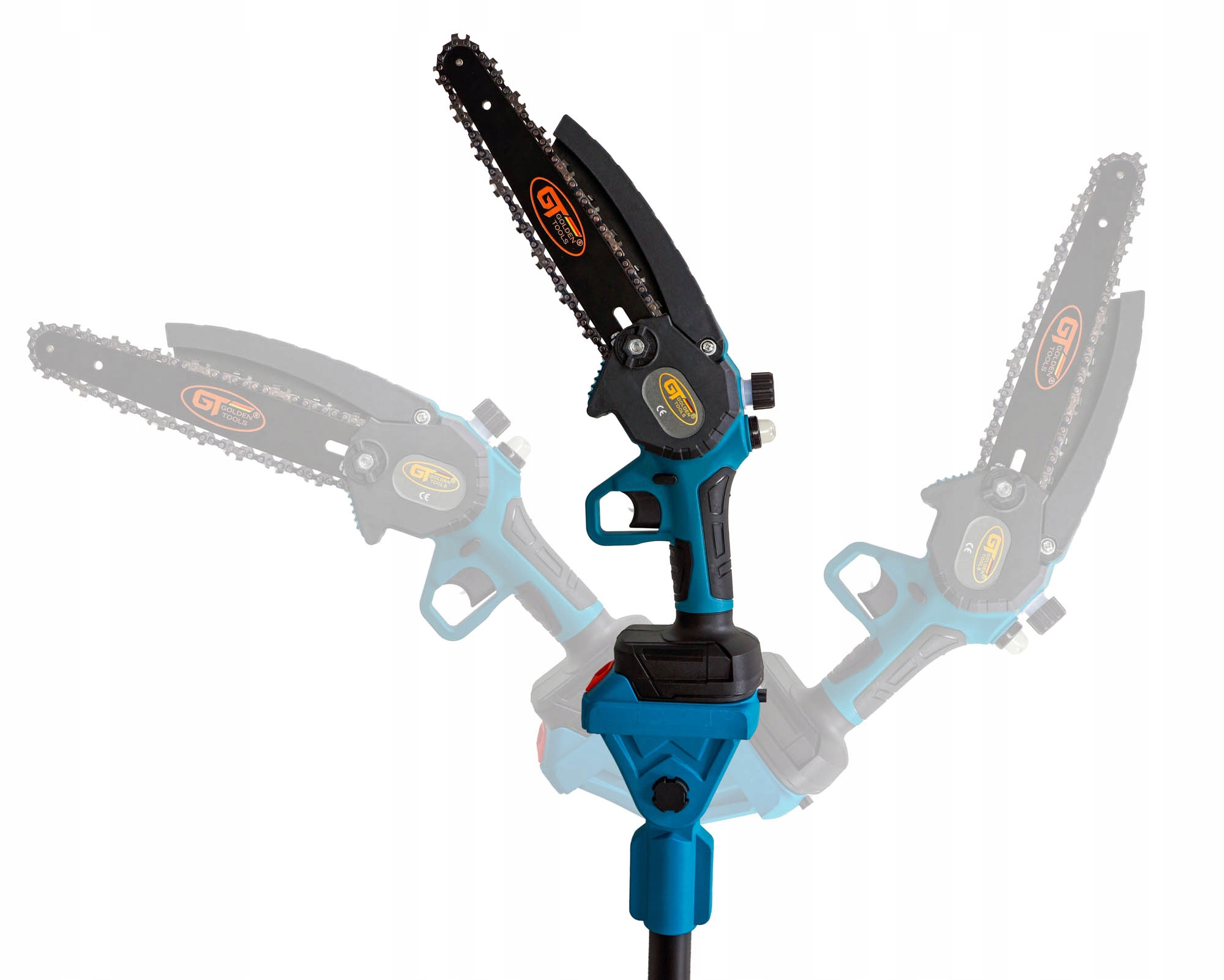 Wysięgnik. Idealnie nadaje się do przycinania i podcinania gałęzi. Regulowany kąt cięcia w zakresie od 0 do 90 stopni. Podwójny teleskop.