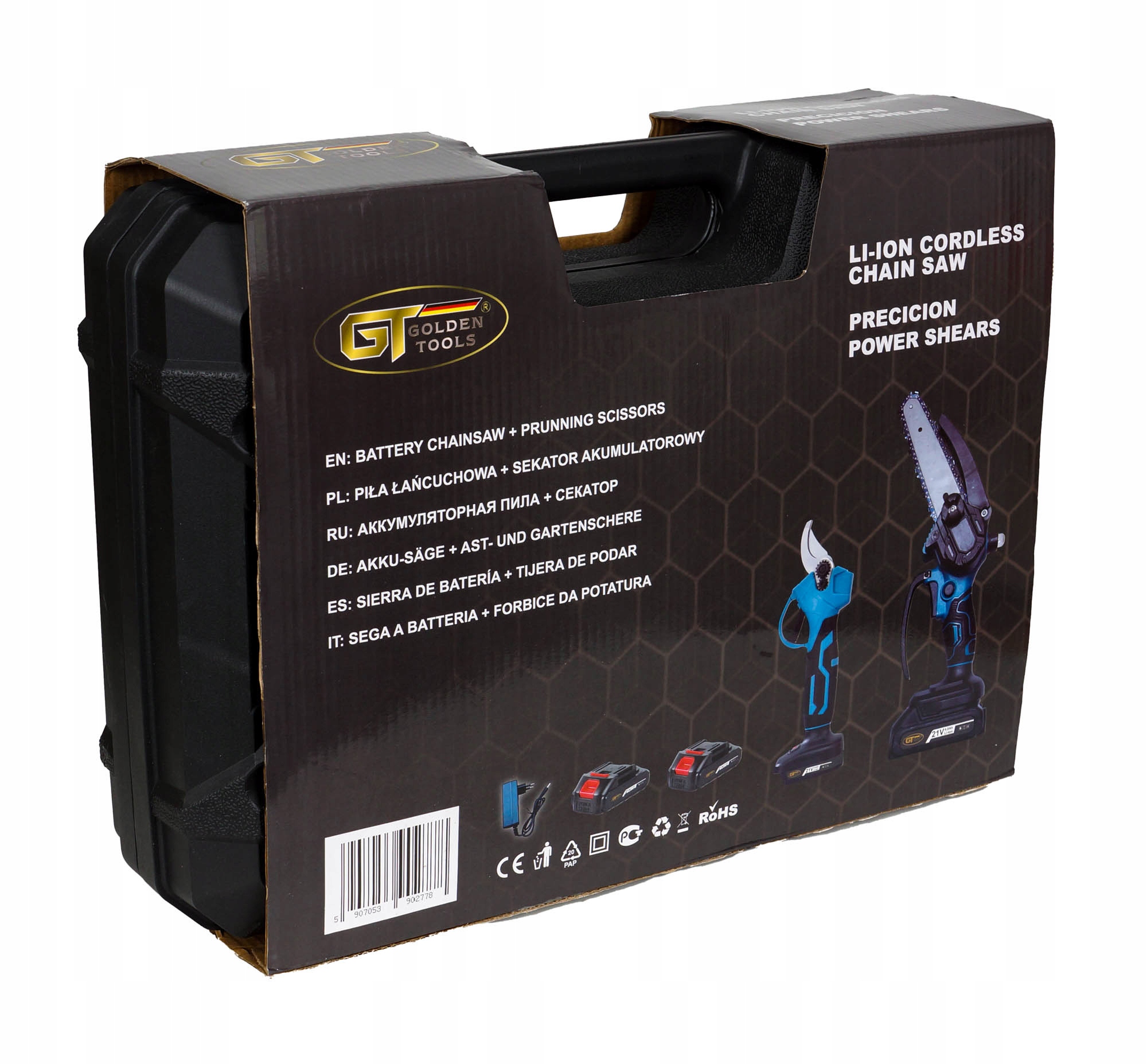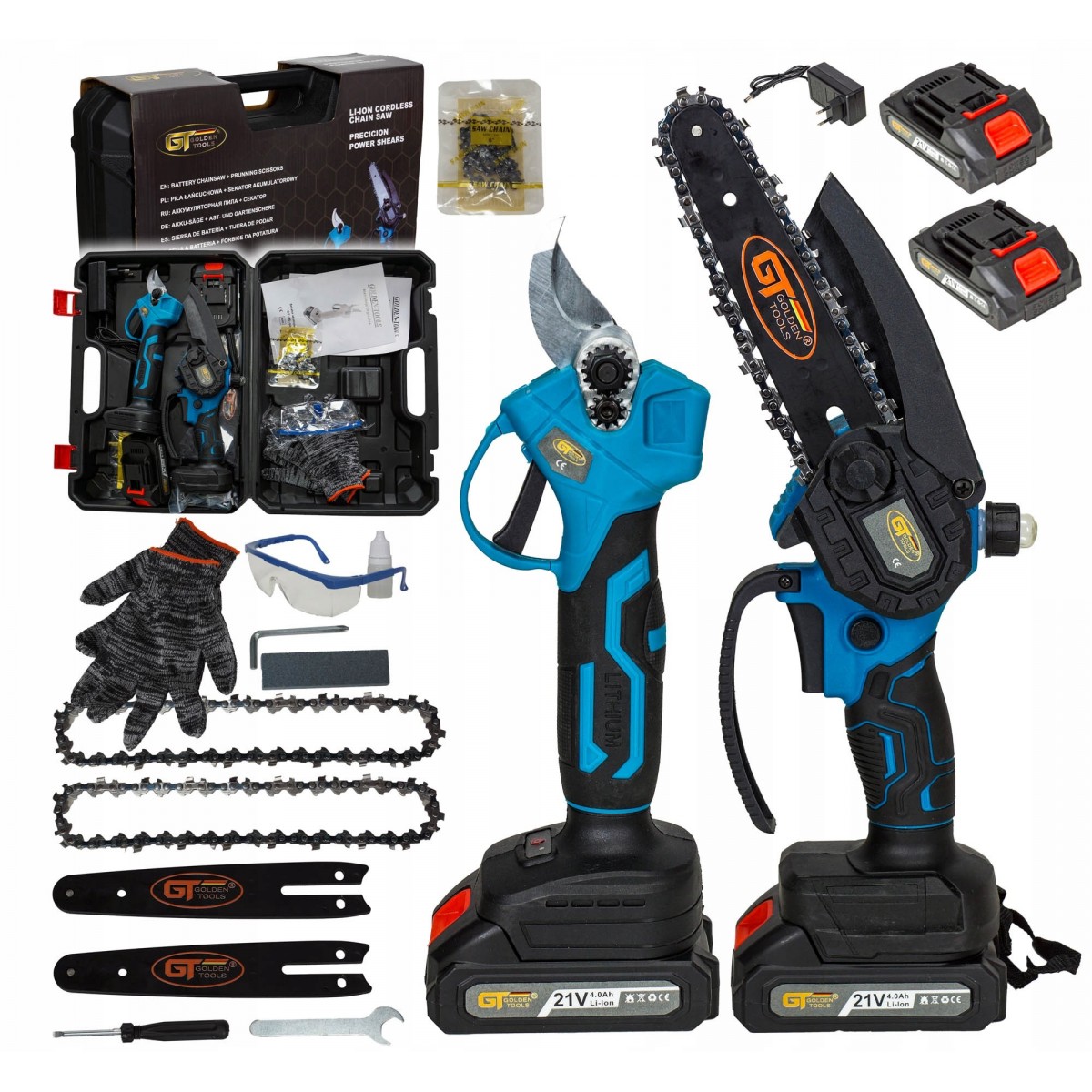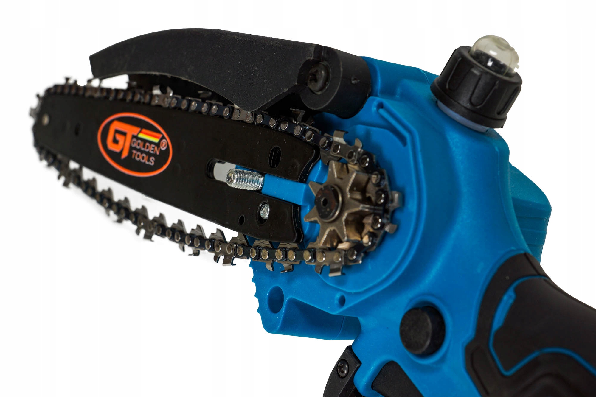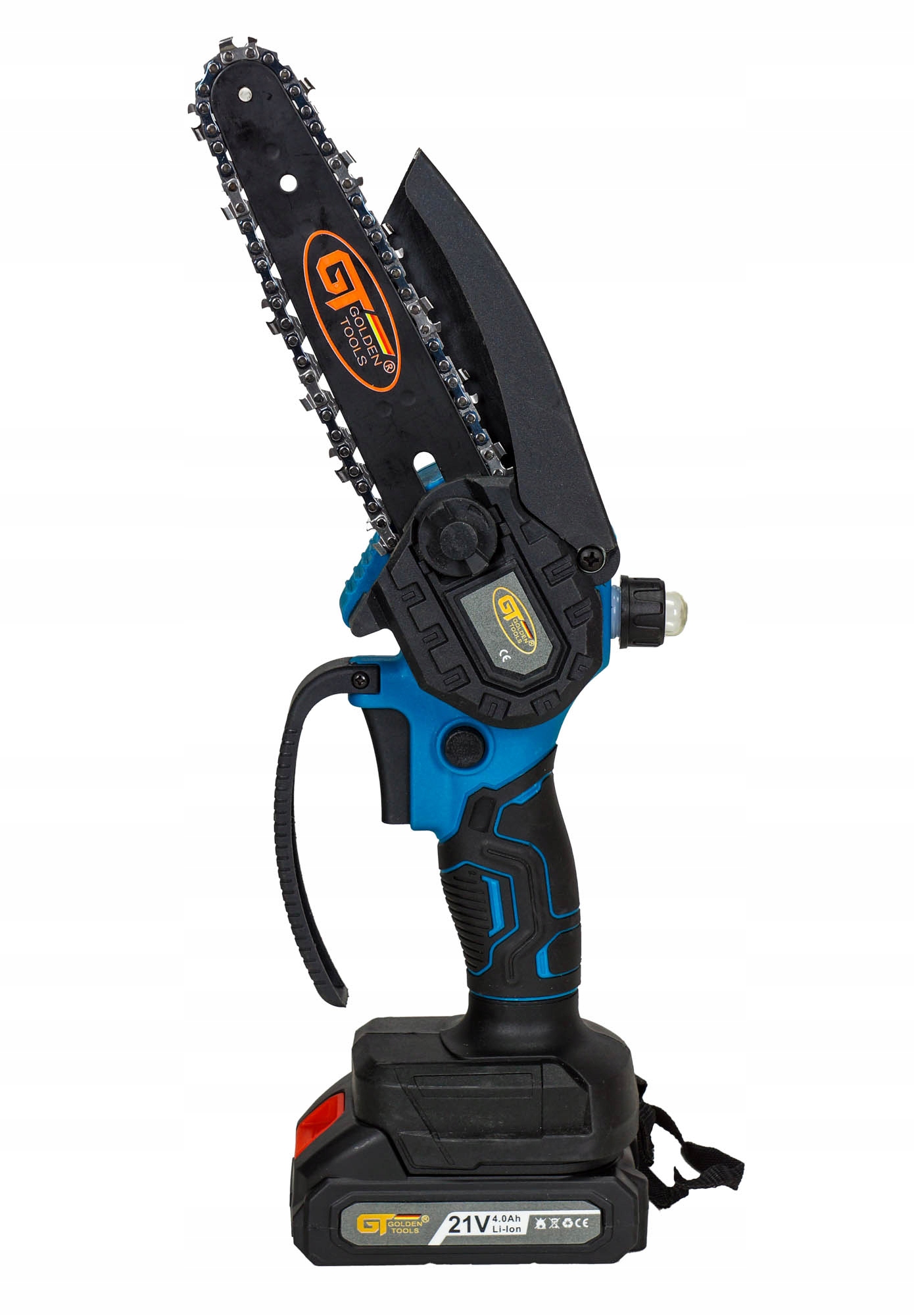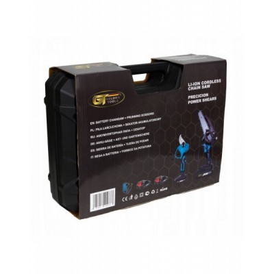 Aku pilarka łańcuchowa marki GOLDEN TOOLS z prowadnicą 8" i systemem smarowania łańcucha jest doskonałym narzędziem do cięcia gałęzi, mniejszych drzew i innych prac związanych z pielęgnacją roślin. Dzięki kompaktowej i bezprzewodowej konstrukcji zapewnia maksymalną swobodę ruchu, co ułatwia pracę w trudno dostępnych miejscach.