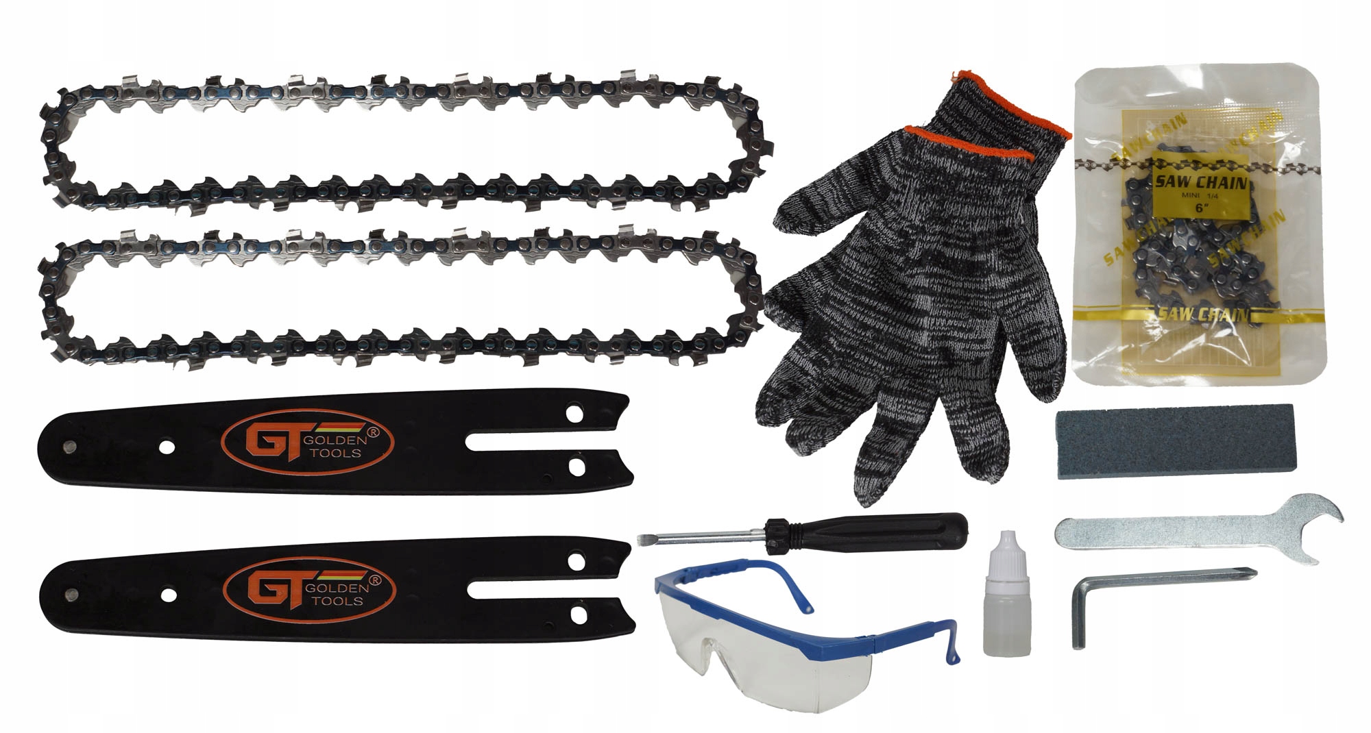Zestaw zawiera 2 łańcuchy i 2 prowadnice: Zapewnia dłuższą pracę i szybką wymianę.