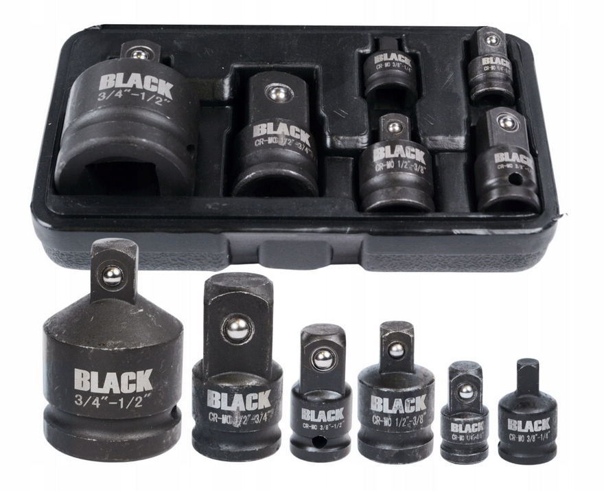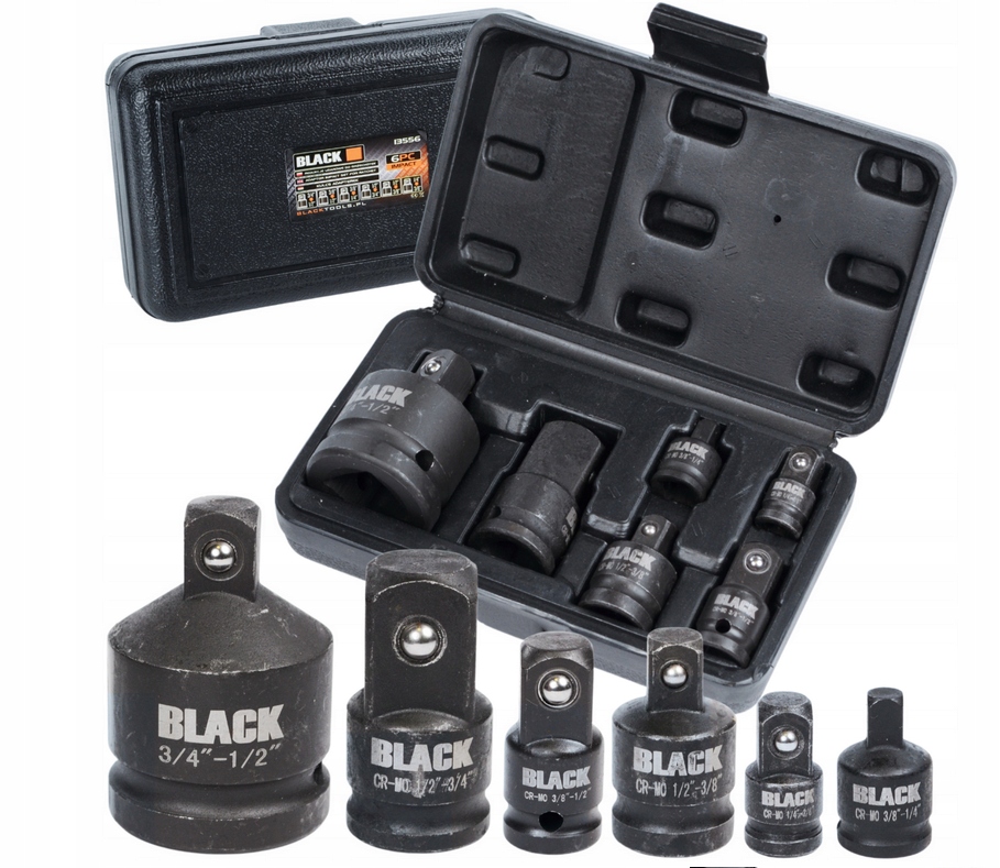 Komplet redukcji udarowych firmy BLACK to produkt najwyższej jakości, wykonany z wytrzymałej stali Cr-V. Dzięki swojej trwałości i niezawodności, te adaptery stanowią niezbędne wyposażenie dla każdego majsterkowicza lub profesjonalisty.