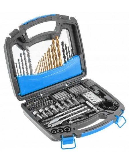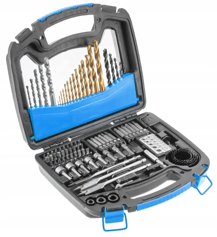 Zestaw akcesoriów do wiercenia, składający się z 100 elementów, to kompletne rozwiązanie dla każdego profesjonalisty. Aby sprostać pracy z dużymi obciążeniami akcesoria zostały wykonane z wysokogatunkowej stali chromowo wanadowej.