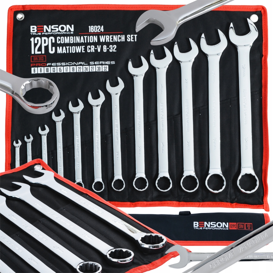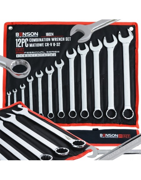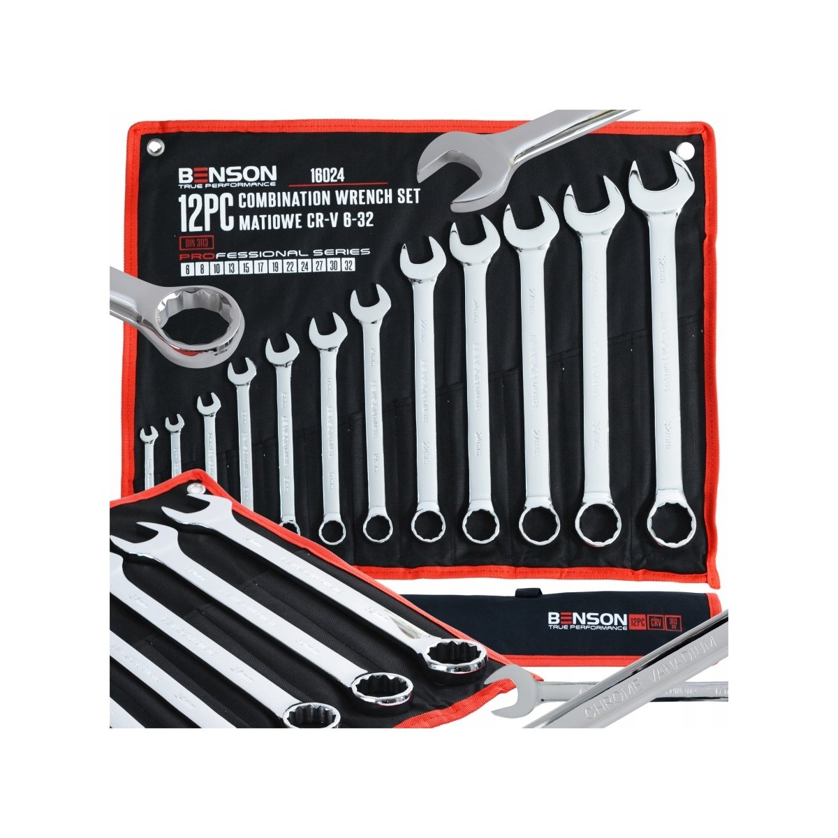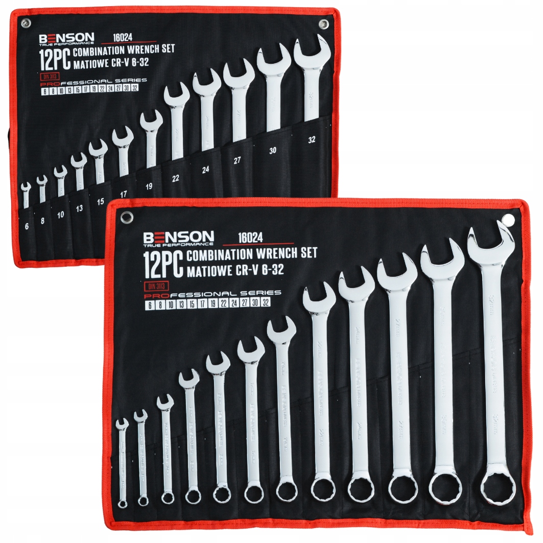 Wymarzony zestaw kluczy płasko-oczkowych BENSON BY BLACK® - teraz w rewelacyjnej ofercie! Te solidne narzędzia, wykonane z wysokiej jakości stali chromowo-wanadowej, z pewnością ułatwią Ci każdą naprawę i zlecenie. Nie czekaj dłużej - podnieś swój warsztat na wyższy poziom dzięki kluczom BENSON BY BLACK®!