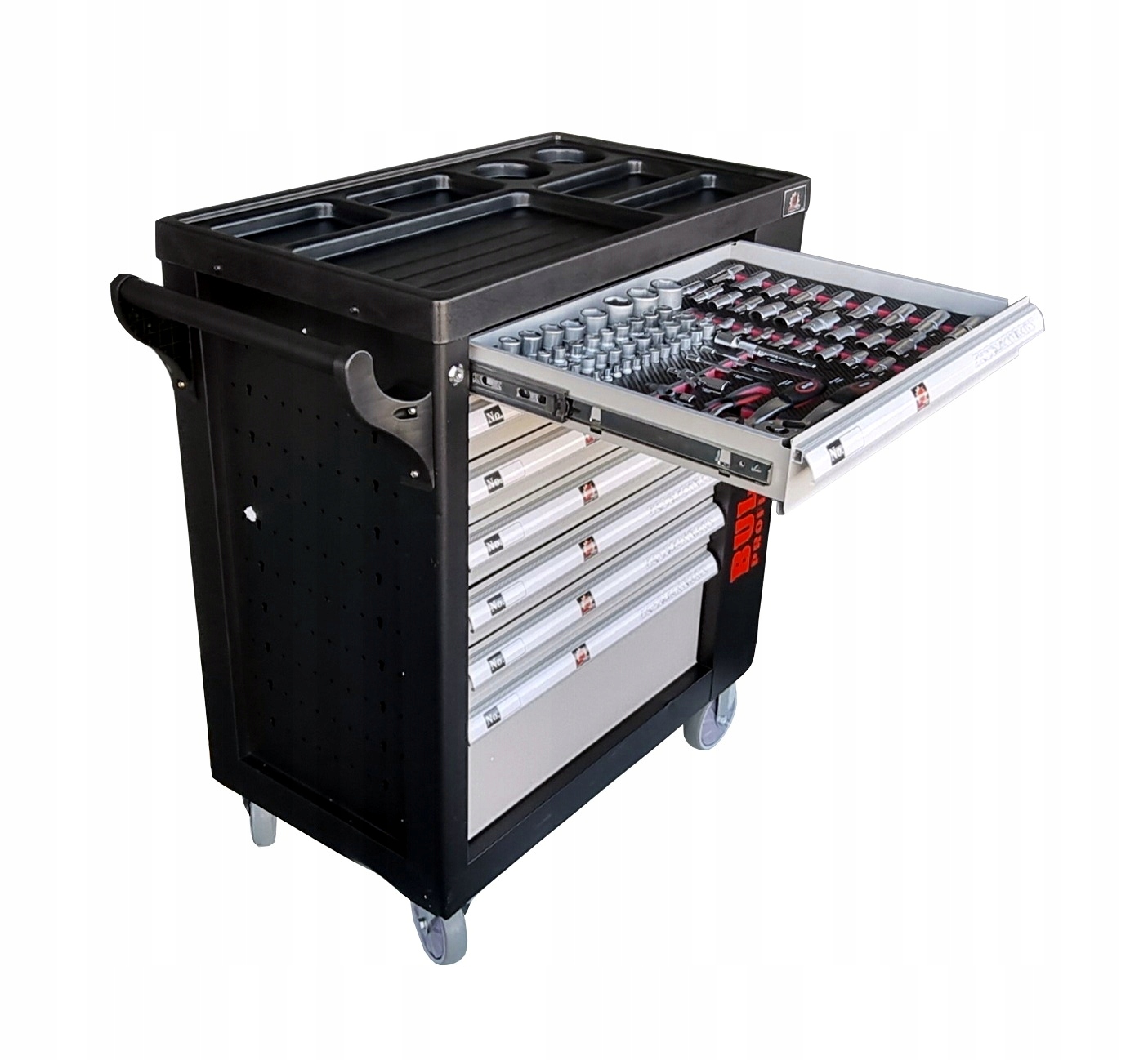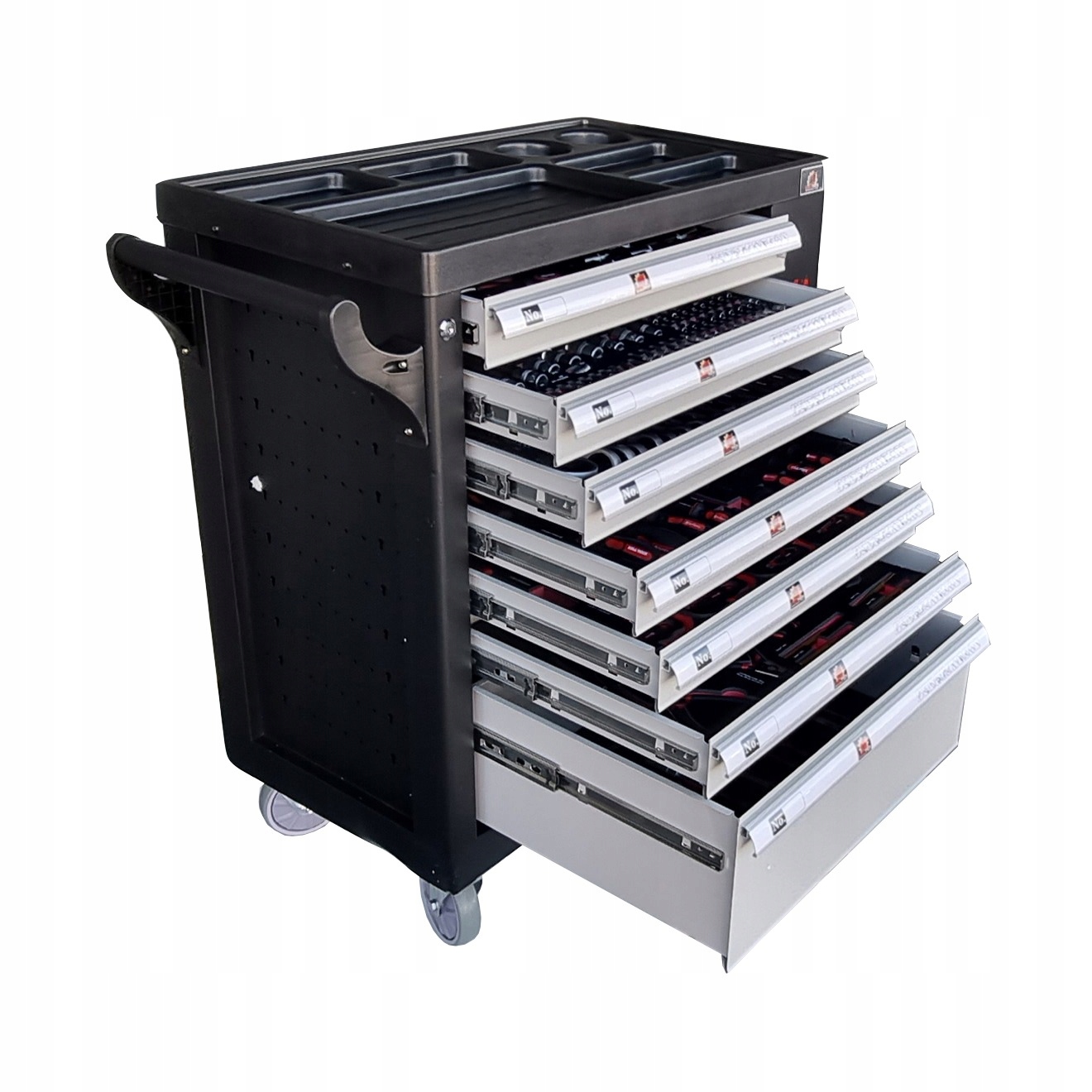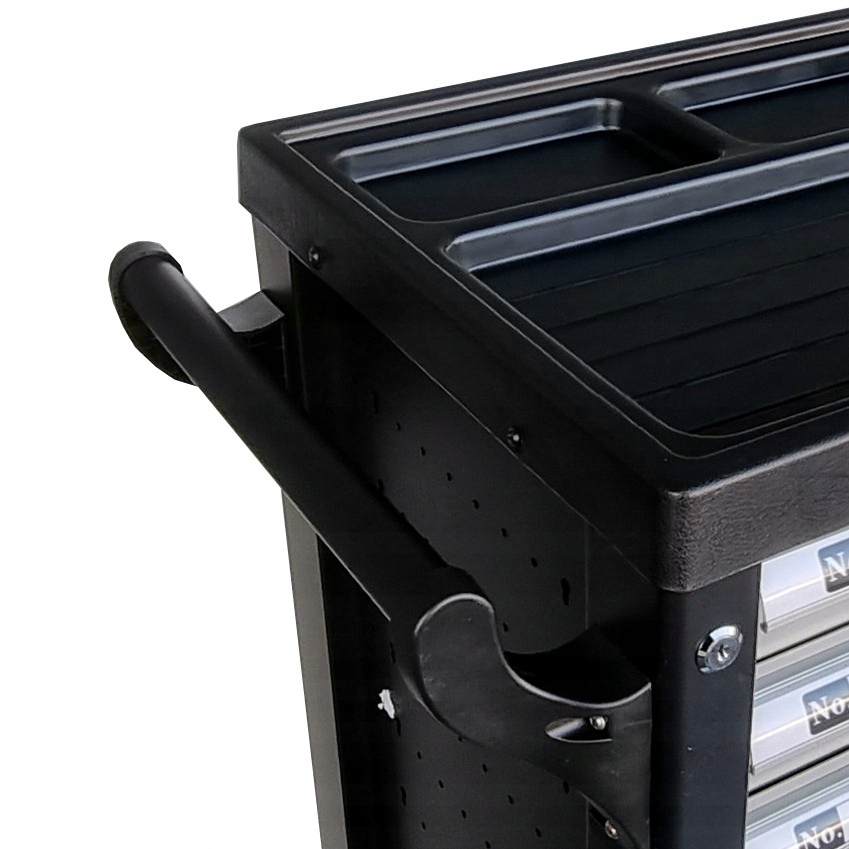 Każda z szuflad została osadzona na prowadnicach łożyskowanych, przez co ich otwieranie jest płynne, ciche oraz trwałe.