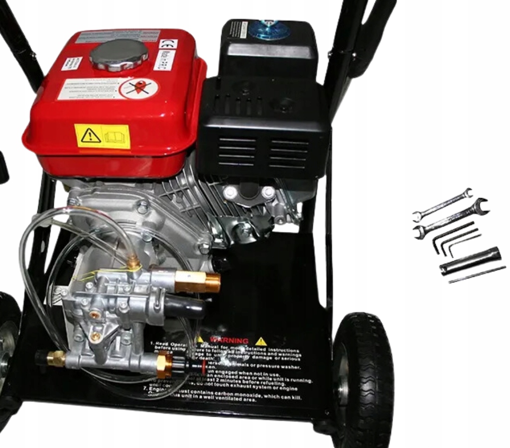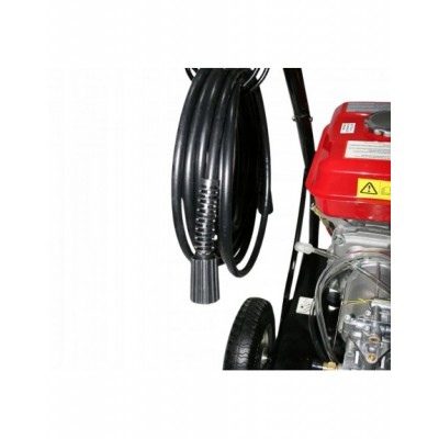 Ciśnienie wody wynosi aż 20,6 MPa, co pozwala na usunięcie zarówno świeżych zabrudzeń, jak i tych trudniejszych, na przykład z kostki brukowej. Dla porównania, ciśnienie wody z węża ogrodowego to maksymalnie 0,3–0,5 MPa.