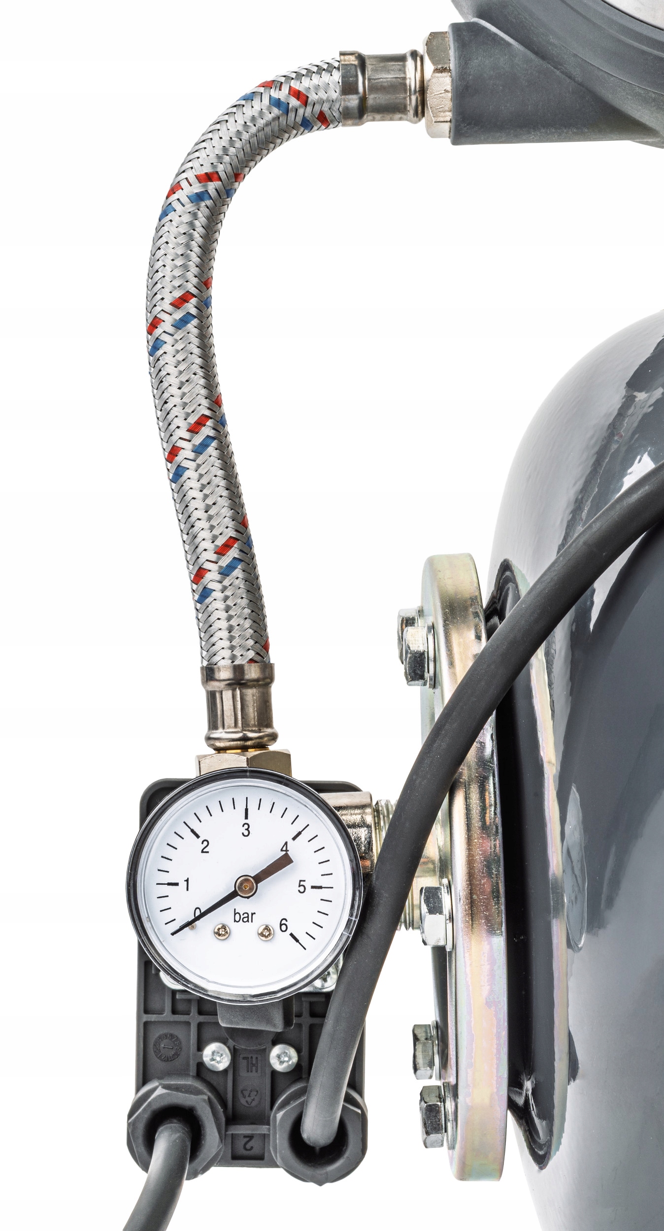 Urządzenie wyposażono we wbudowany presostat, który automatycznie włącza pompę przy spadku ciśnienia i wyłącza ją po jego stabilizacji.
