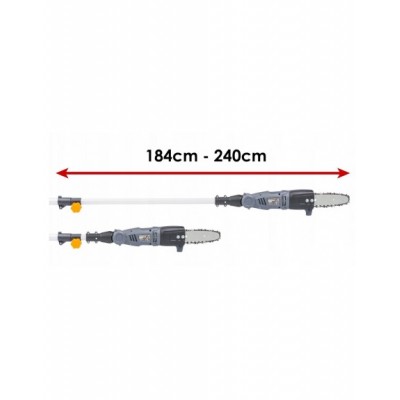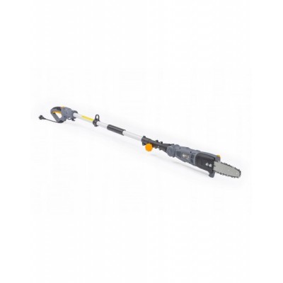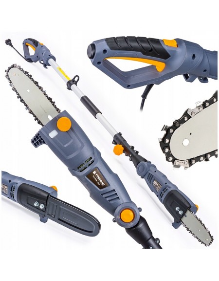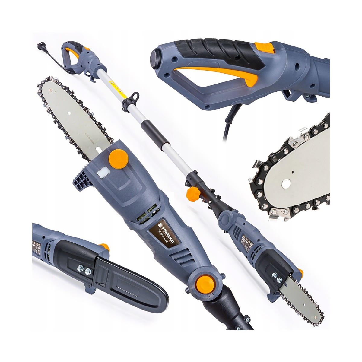Pilarka elektryczna na wysięgniku z trzy stopniową regulacją pochylenia firmy POWERMAT PM-EPW-1000 z wysokiej jakości prowadnicą i łańcuchem. Możliwość szybkiej i łatwej regulacji długości wysięgnika w zakresie od 184 cm do 240 cm oraz możliwość regulacji kąta nachylenia głowicy tnącej w trzech stopniach bardzo ułatwia przycinanie drzewek. Silnik elektryczny o mocy 1000 W umożliwia cięcie grubych gałęzi dzięki zapasowi mocy.