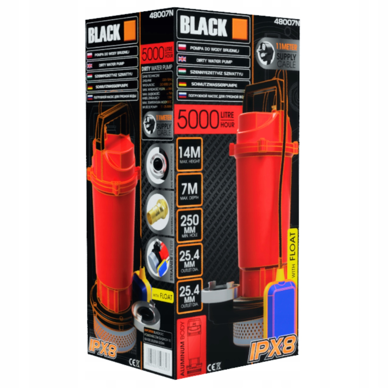 Ta zatapialna pompa z płwakiem jest idealnym rozwiązaniem dla osób poszukujących wydajnego i trwałego sprzętu do przepompowywania wody. Dzięki konstrukcji z solidnych materiałów oraz maksymalnej wydajności wynoszącej 5000L na godzinę, pompa ta doskonale sprawdzi się w różnorodnych zastosowaniach domowych i awaryjnych. Bezproblemowo obsłuży przepompowywanie ścieków, wody deszczowej oraz incydentalne odwadnianie zatopionych obszarów. Zasilana napięciem 230V i o mocy 370W, zapewnia efektywne działanie przy minimalnym zużyciu energii. Solidna konstrukcja oraz sprawdzona wydajność sprawiają, że pompa Black 48007N to niezawodne narzędzie, które sprosta nawet najbardziej wymagającym zadaniom