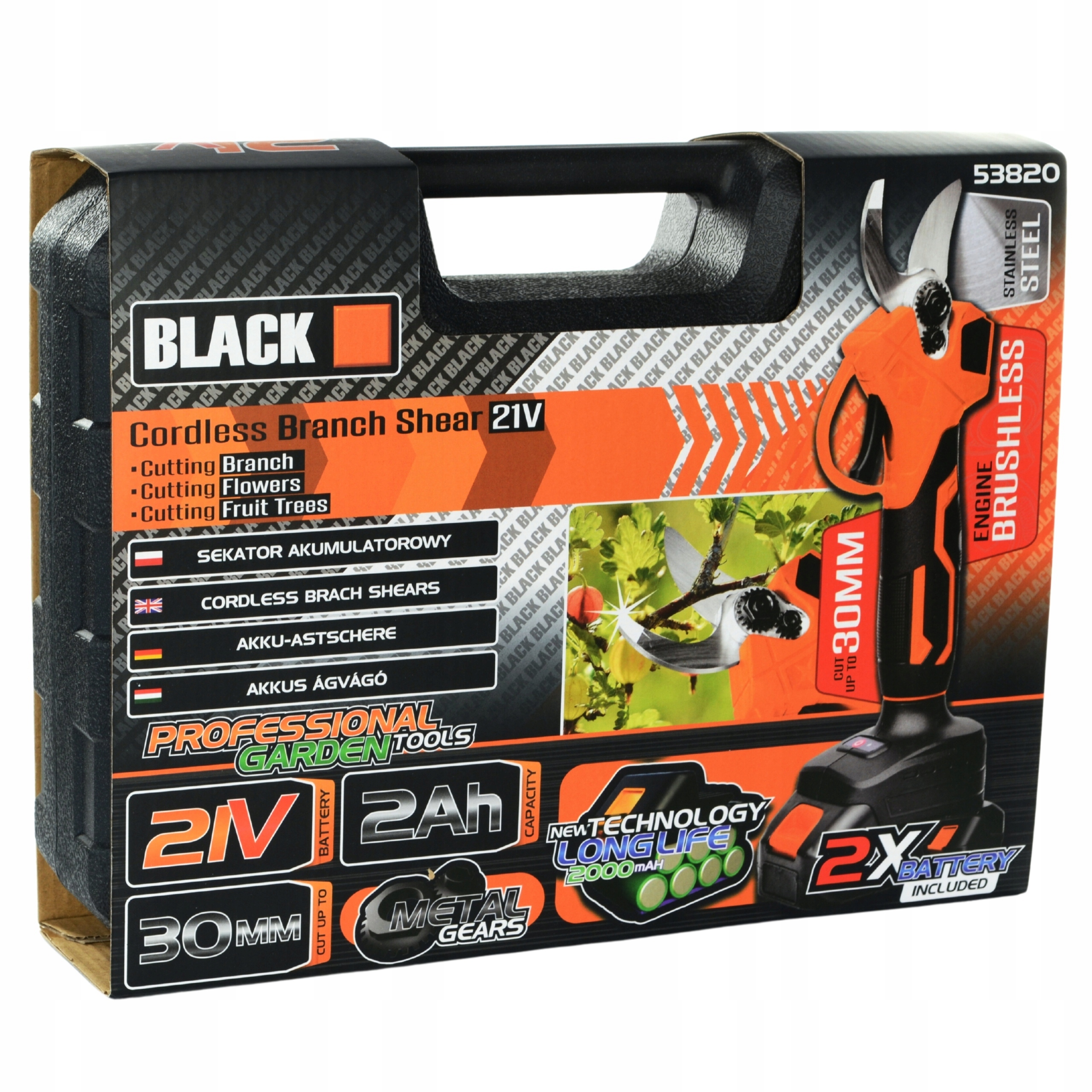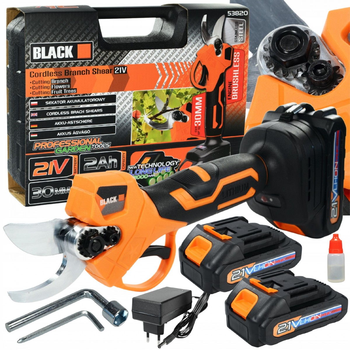 Bateria litowa o dużej pojemności 21 V 2000 mAh, 1.5h czasu ładowania może zapewnić 4-5 godzin pracy, zestaw zawiera 1 baterię zastępczą.