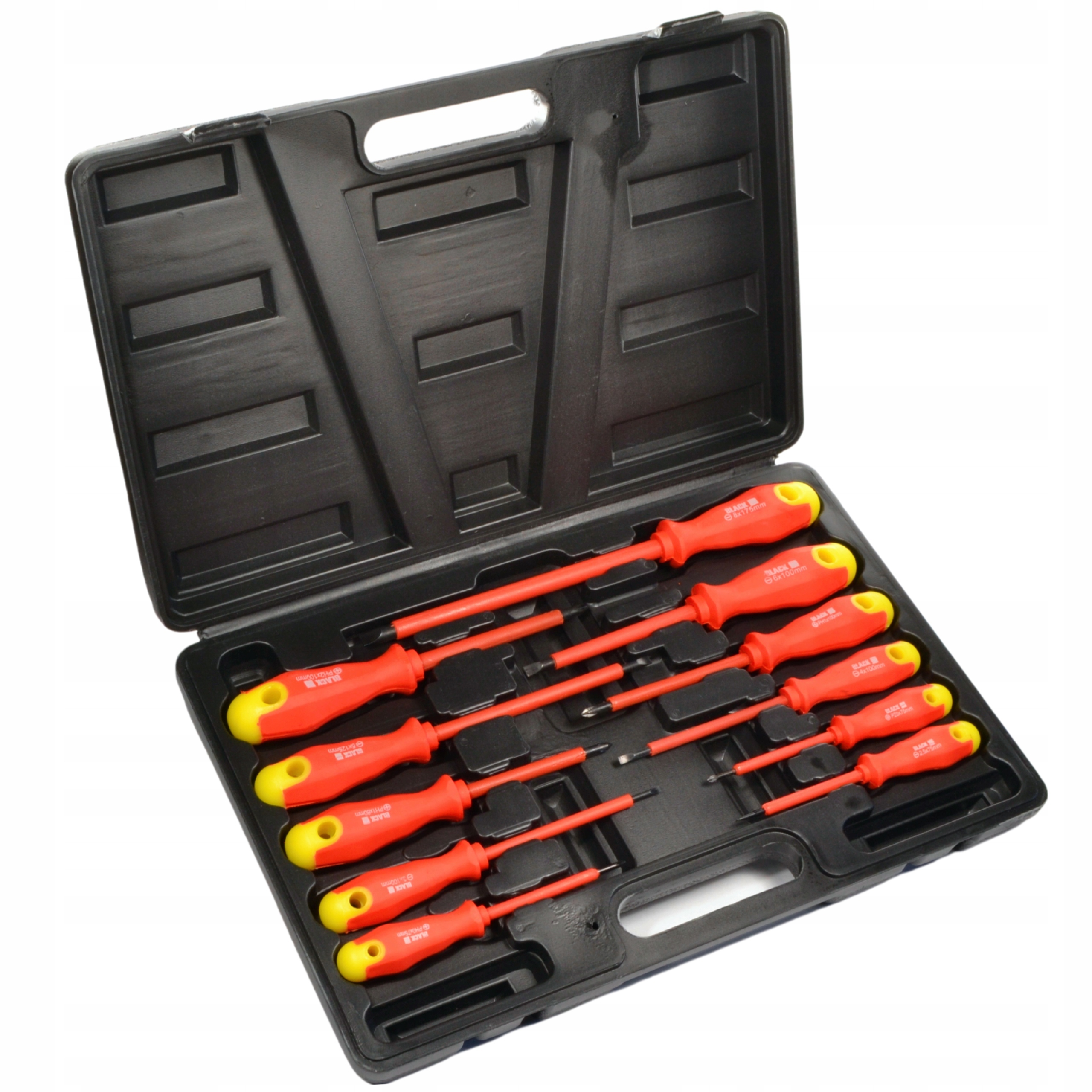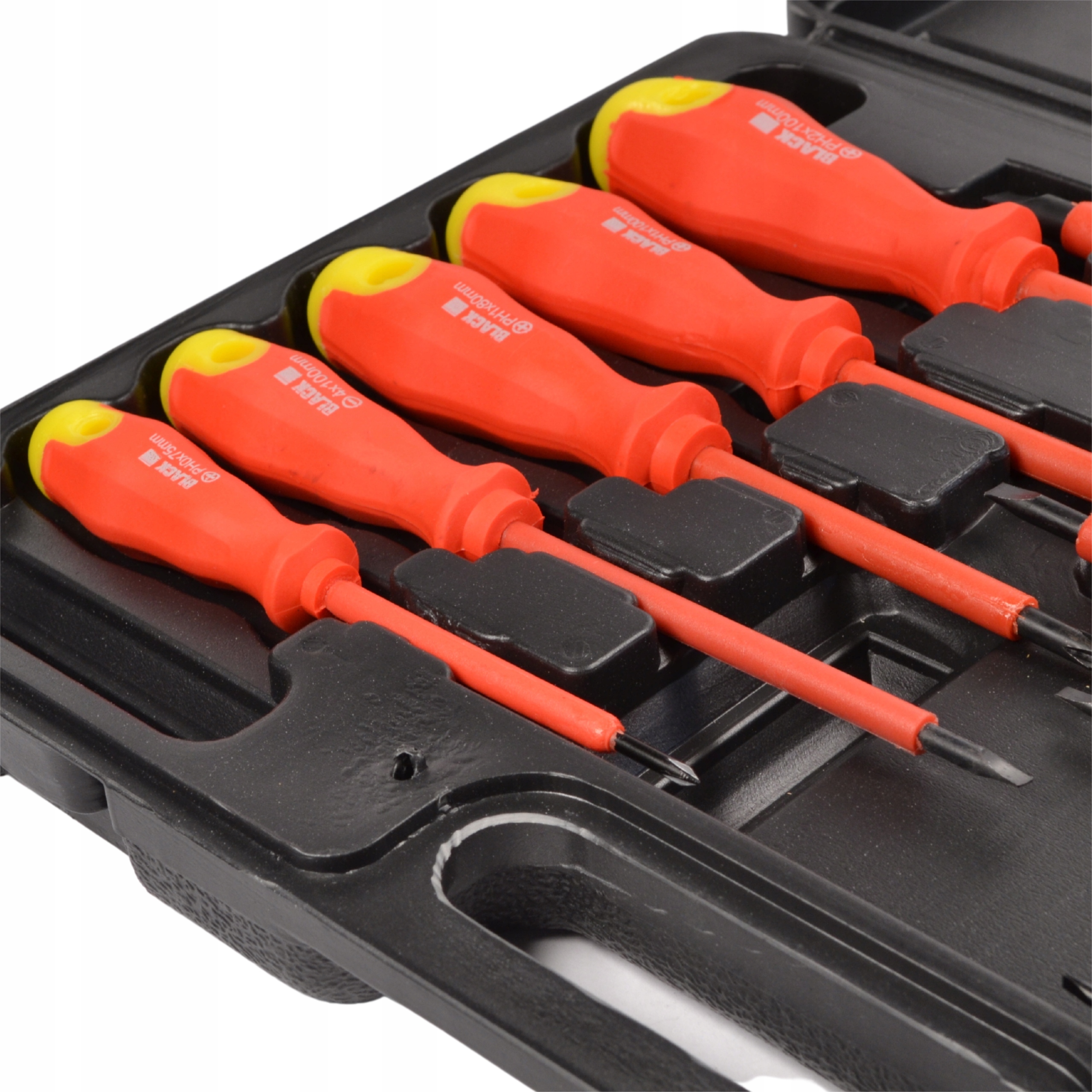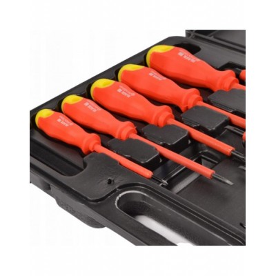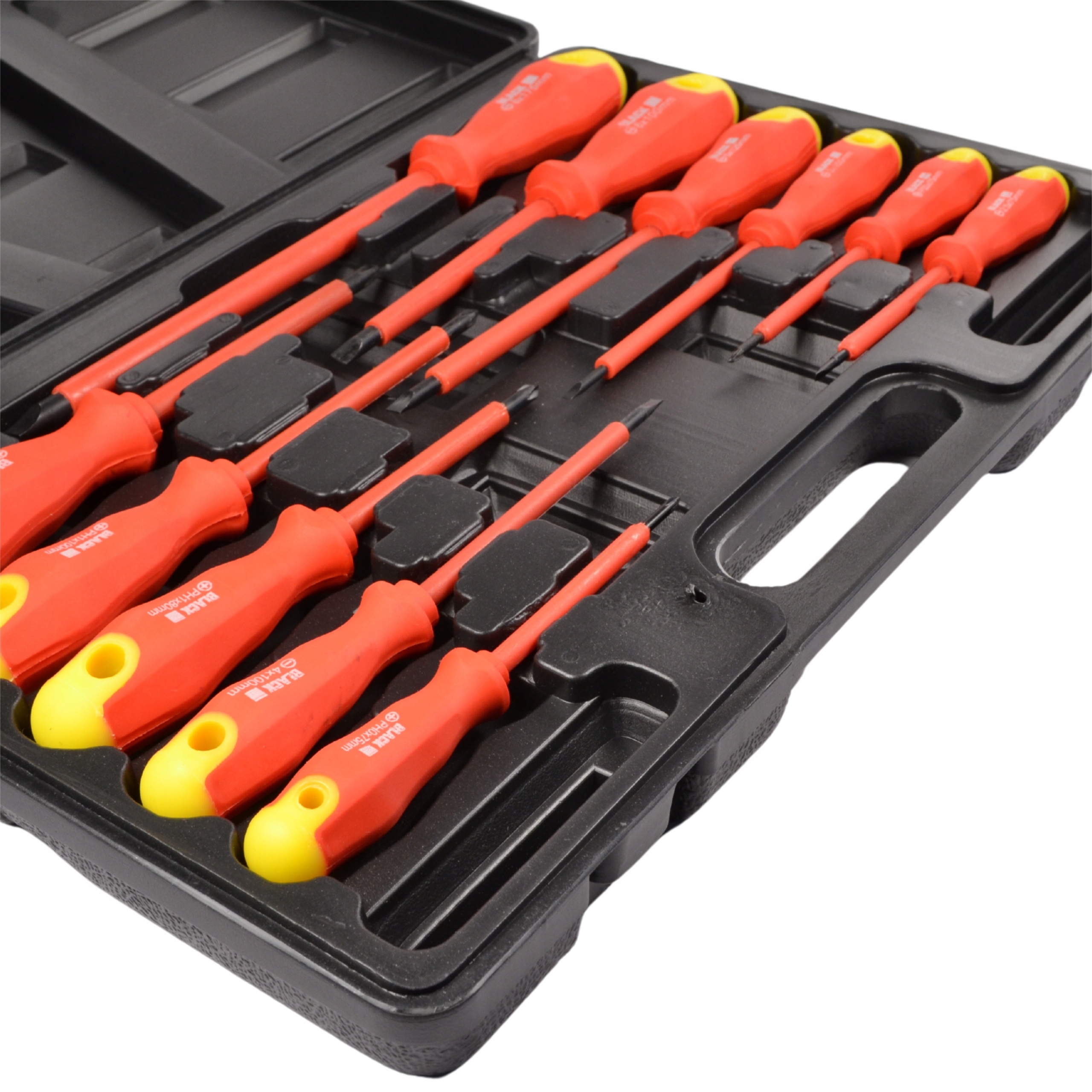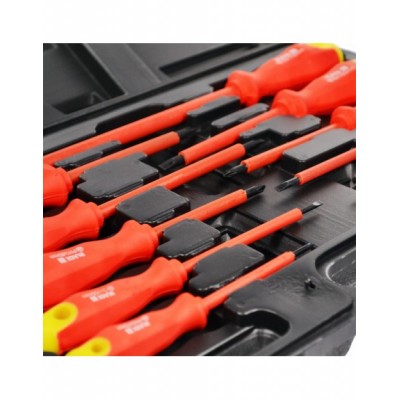 Wkrętaki izolowane wchodzące w skład zestawu dedykowane do pracy pod napięciem wykonane zostały z wysoko gatunkowej stali chromowo-wanadowej.
