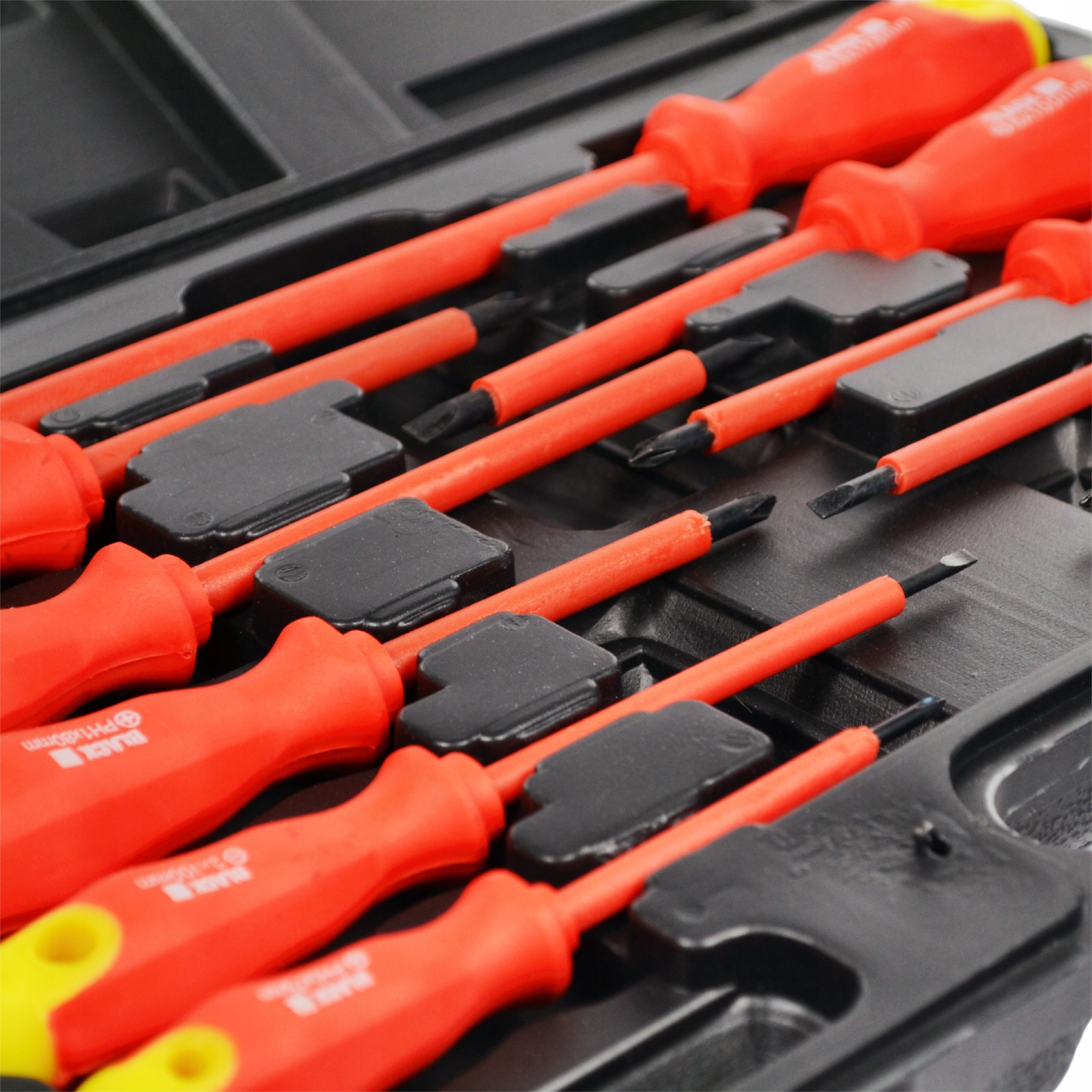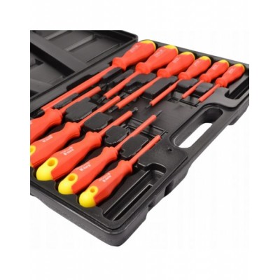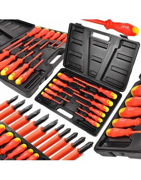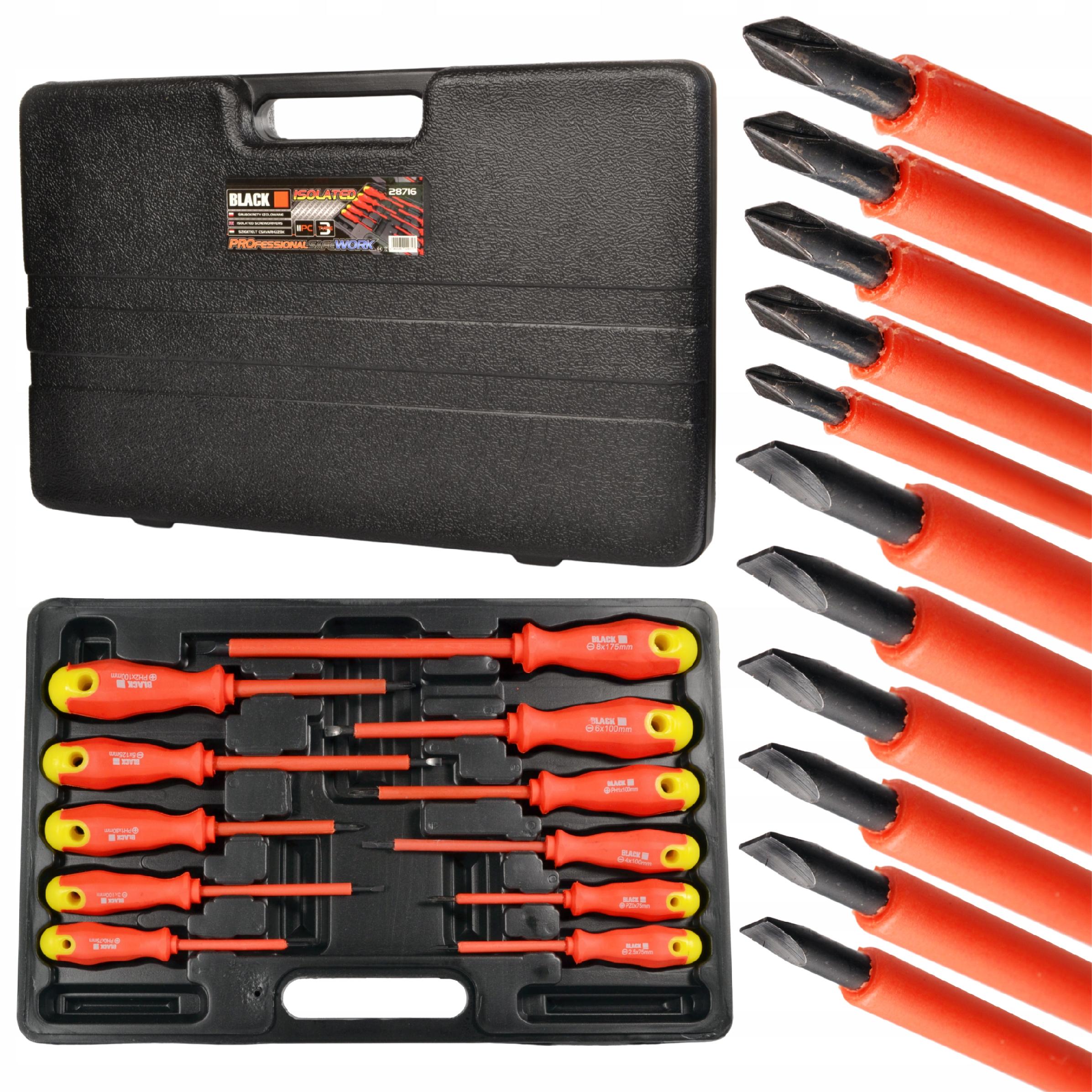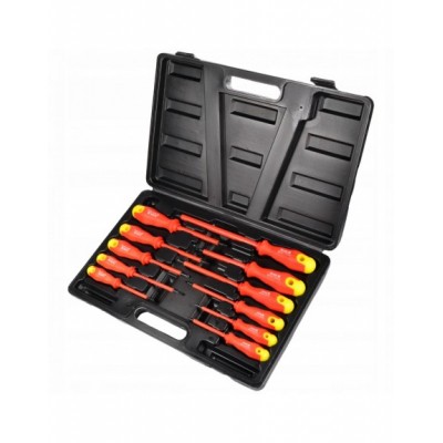 Wkrętaki izolowane wchodzące w skład zestawu dedykowane do pracy pod napięciem wykonane zostały z wysoko gatunkowej stali chromowo-wanadowej.