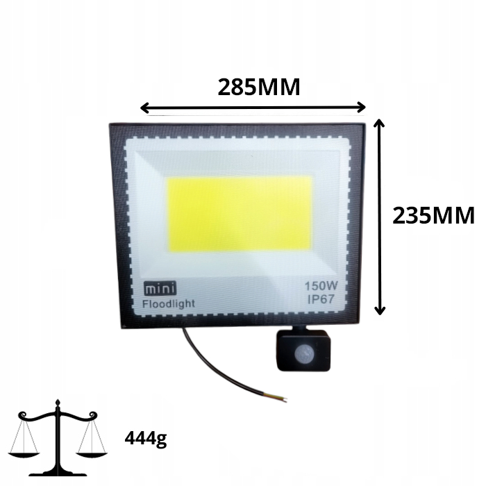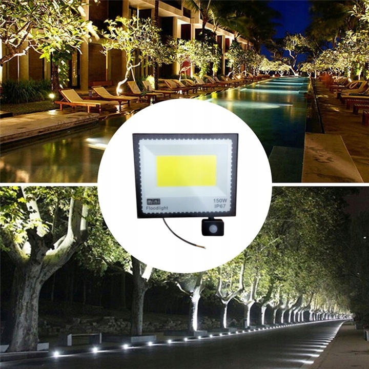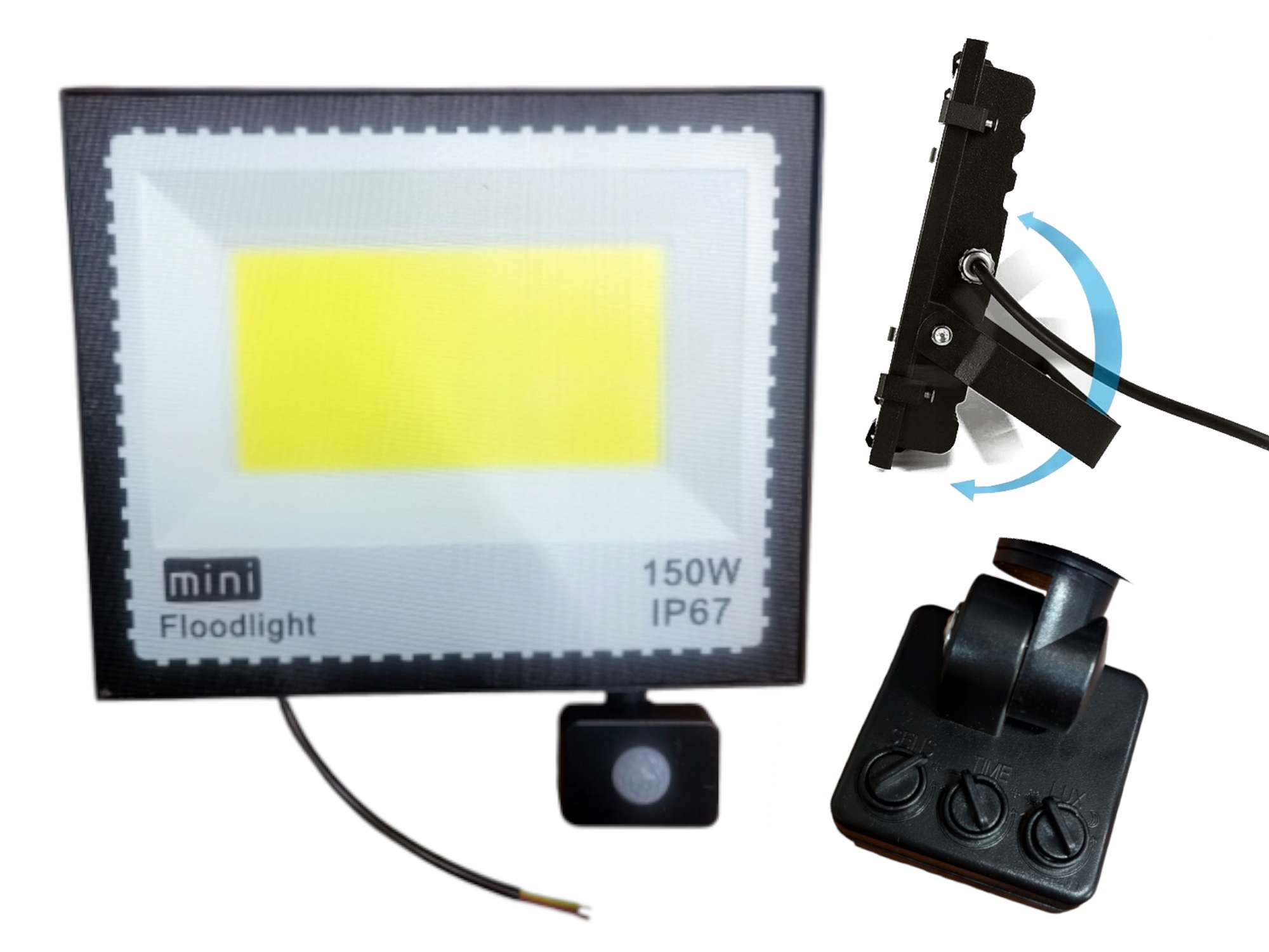 HALOGEN NAŚWIETLACZ LAMPA 150W 6500K 10500LM IP67 CZUJNIK RUCHU 120 KĄT