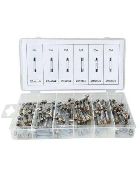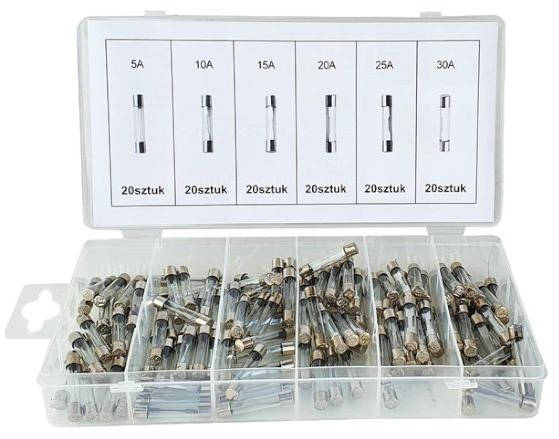 W zestawie 120 sztuk bezpieczników o 6 różnych natężeniach prądu!
