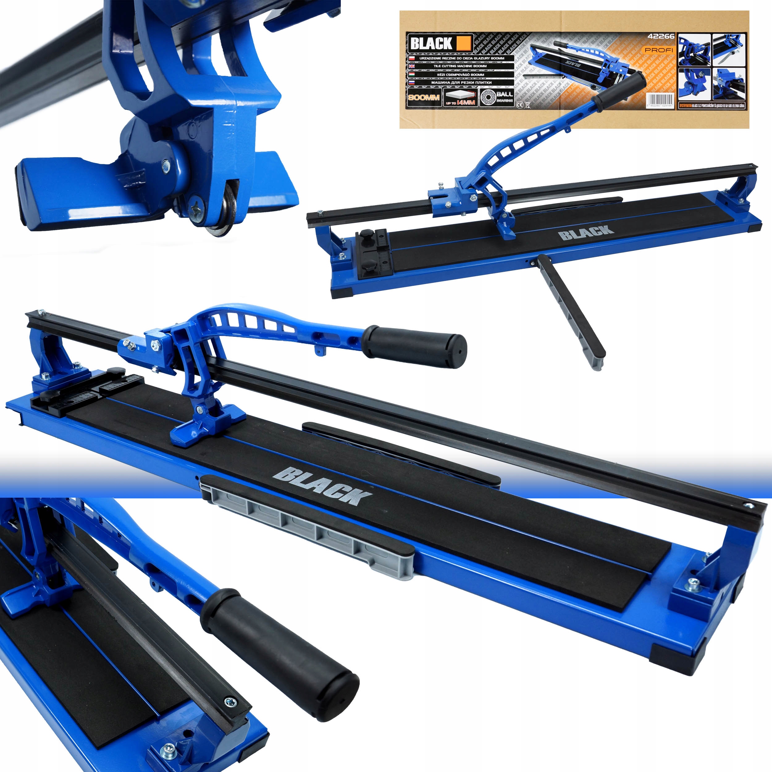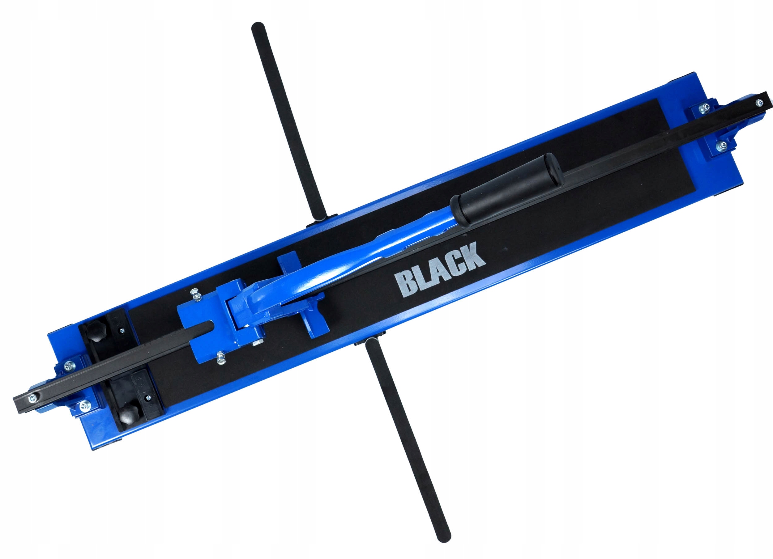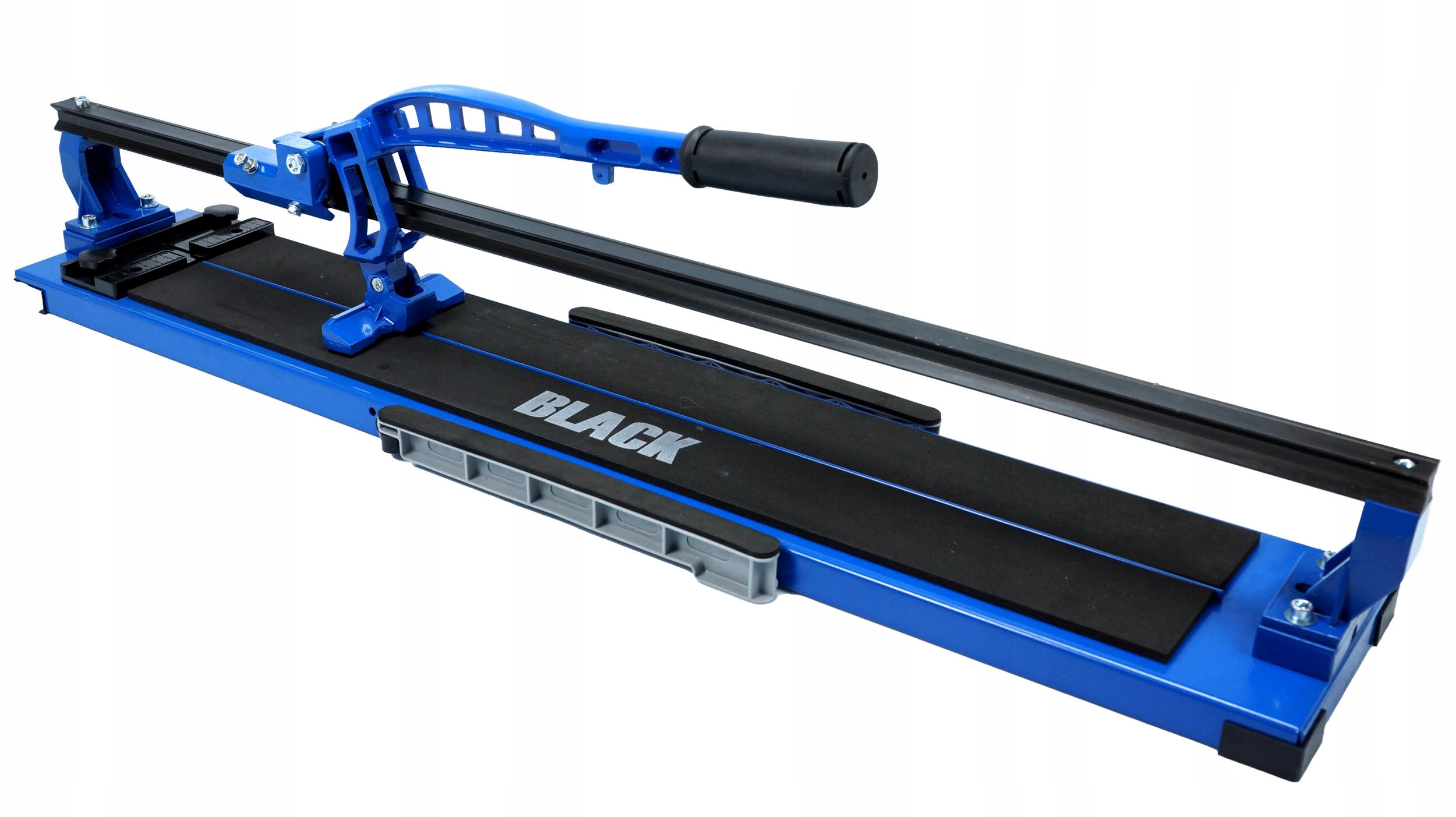 Przecinarka do glazury 42666 marki BLACK składa się ze stabilnej podstawy wykonanej z grubej blachy stalowej wyścielonej warstwą technicznej mikrogumy, dwóch równoległych prowadnic i przesuwanego po nich zespołu tnącego.