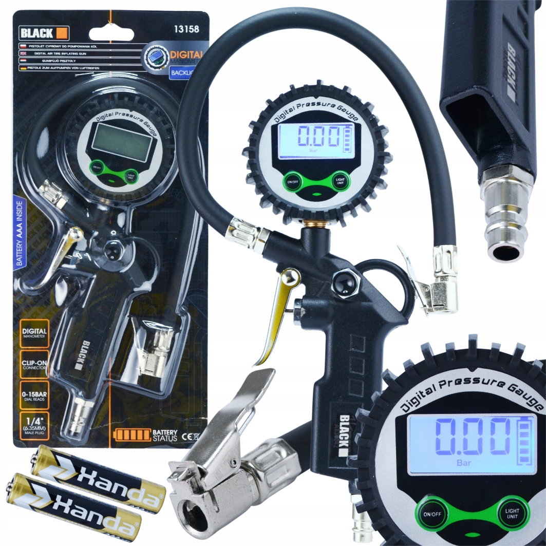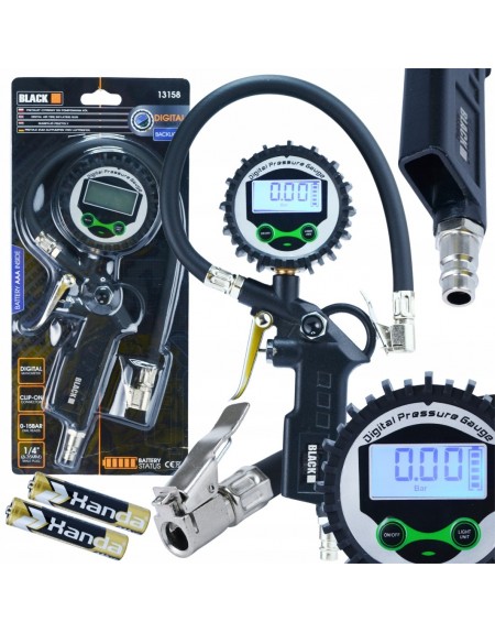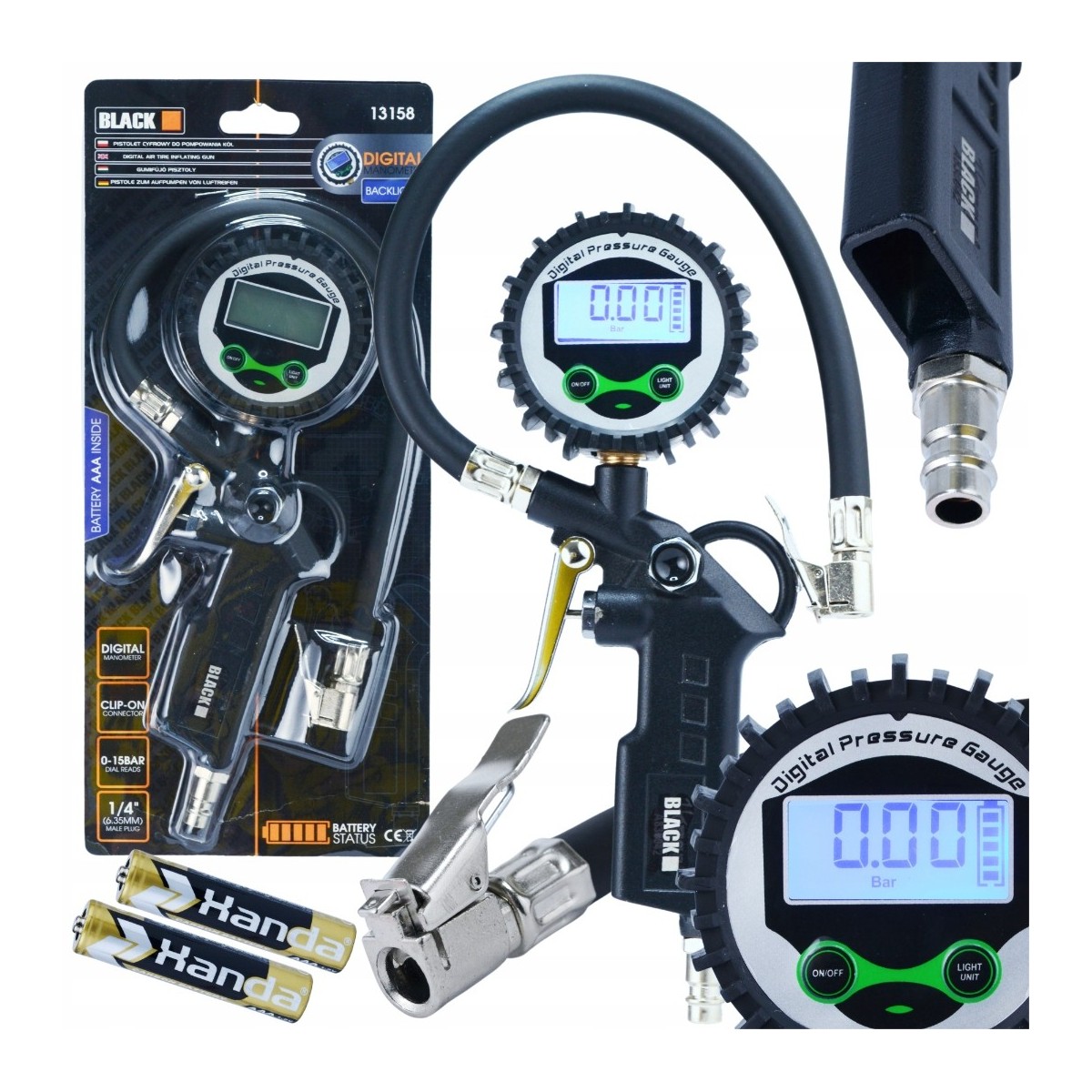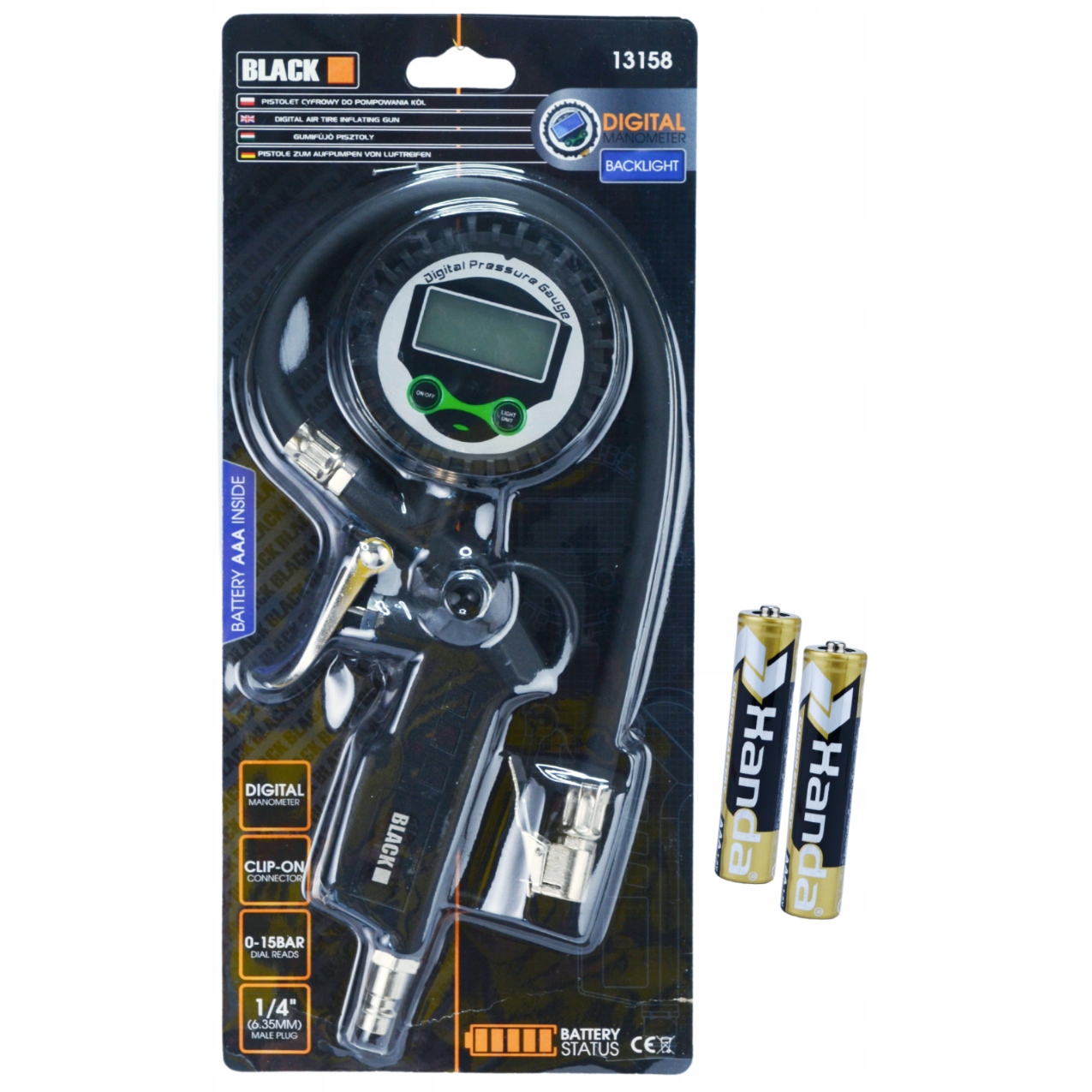 PISTOLET CYFROWY DO POMPOWANIA KÓŁ 1/4" 0-15 BAR WĄŻ 45CM BLACK