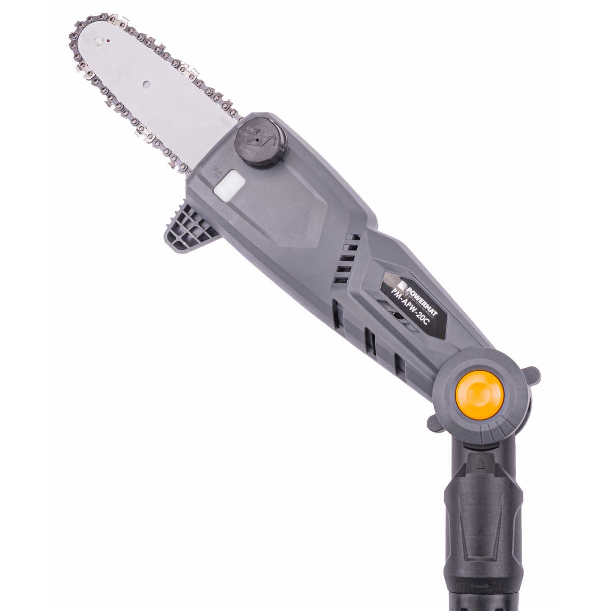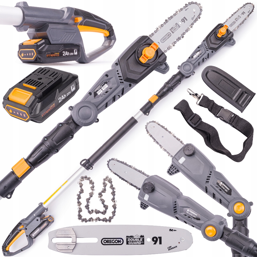 Pilarka elektryczna na wysięgniku z cztero stopniową regulacją pochylenia firmy POWERMAT PM-APW-20C z wysokiej jakości prowadnicą i łańcuchem profesjonalnej marki OREGON. Możliwość szybkiej i łatwej regulacji długości wysięgnika w zakresie od 172 cm do 240 cm oraz możliwość regulacji kąta nachylenia głowicy tnącej w czterech stopniach bardzo ułatwia przycinanie drzewek. Silnik elektryczny na akumulator 20V - 2Ah umożliwia cięcie grubych gałęzi dzięki zapasowi mocy.