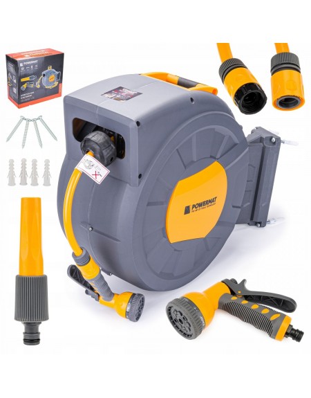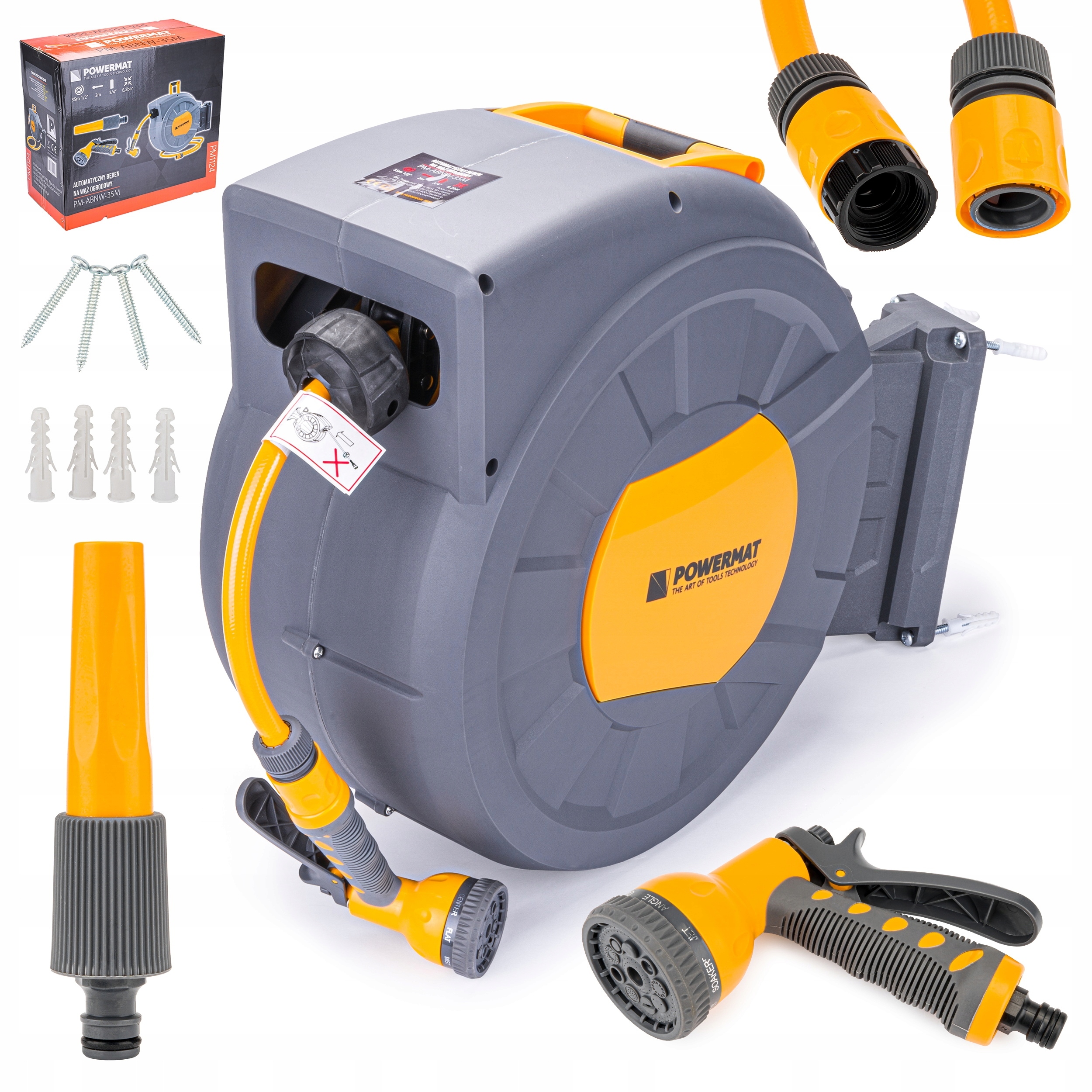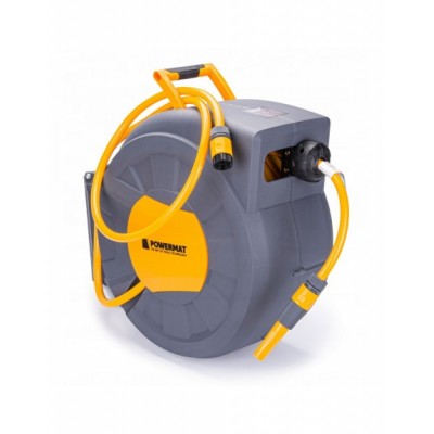 Automatyczny bęben na wąż ogrodowy marki POWERMAT przeznaczony jest do wygodnego przechowywania i użytkowania węża ogrodowego. Dzięki automatycznemu procesowi zwijania węża, nawadnianie, zraszanie i wszelkiego rodzaju prace z wężem ogrodowym jeszcze nigdy nie były tak przyjemne. Bęben zapewni komfort pracy i zapobiegnie plątaniu i zaginaniu się węża.