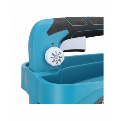 Jedną z głównych zalet siewnika jest możliwość regulacji szerokości i intensywności rozsiewu. Użytkownik ma pełną kontrolę nad parametrami pracy, co pozwala na precyzyjne dopasowanie urządzenia do różnych potrzeb – od dokładnego siewu na małych powierzchniach po szybkie rozprowadzanie materiału na większych terenach. Regulacja natężenia wyrzutu (8 stopni), daje możliwość precyzyjnego kontrolowania ilości rozsiewanego materiału. Szerokość rozrzutu materiału może być regulowana do maksymalnie 5 metrów, co sprawia, że siewnik jest równie efektywny na małych, jak i dużych powierzchniach.