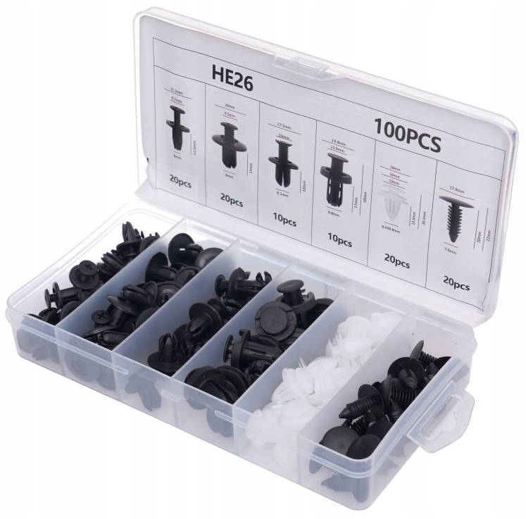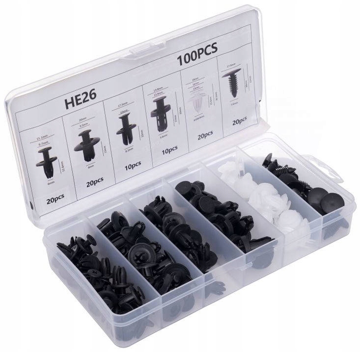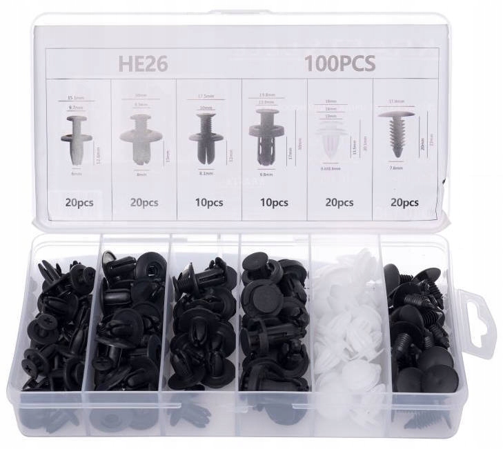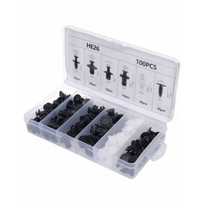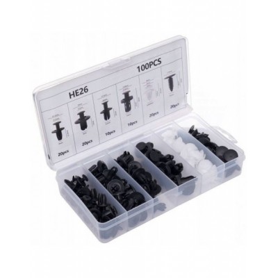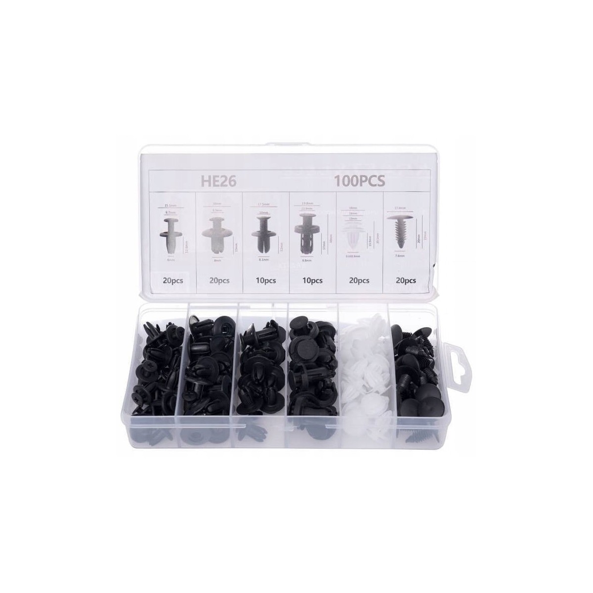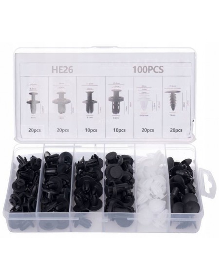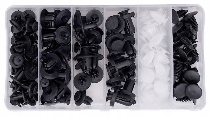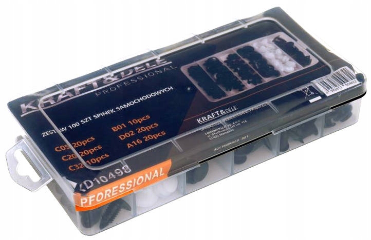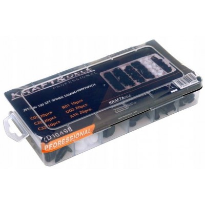 Zestaw spinek i klipsów mocujących do tapicerki 100szt marki Kraft&Dele model KD10498 wykonany z największej jakości materiałów. Zestaw składa się z 6 najpopularniejszych spinek samochodowych, które występują w takich markach jak: BMW, Audi, Lexus, Mercedes, Opel, Skoda, Toyota itp.