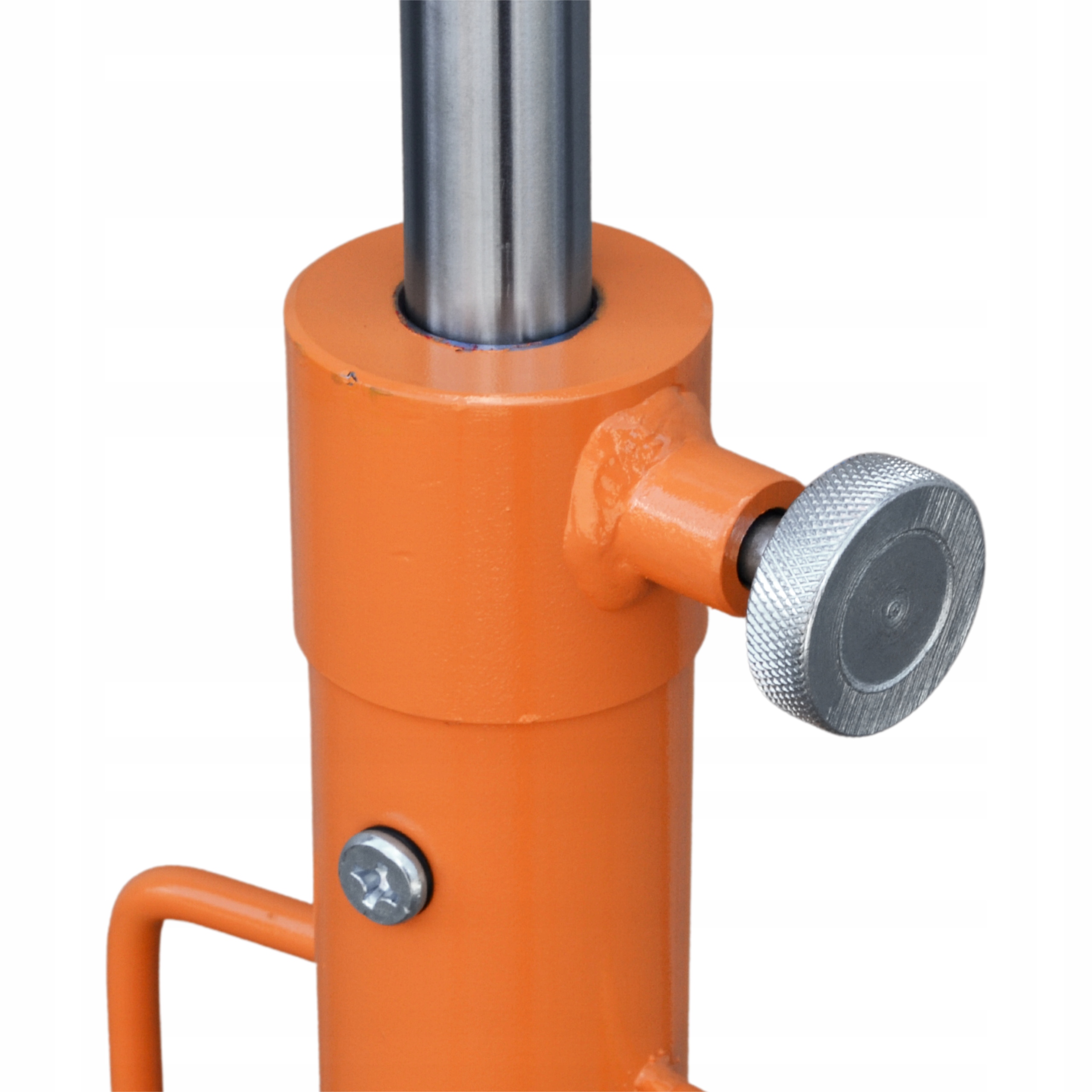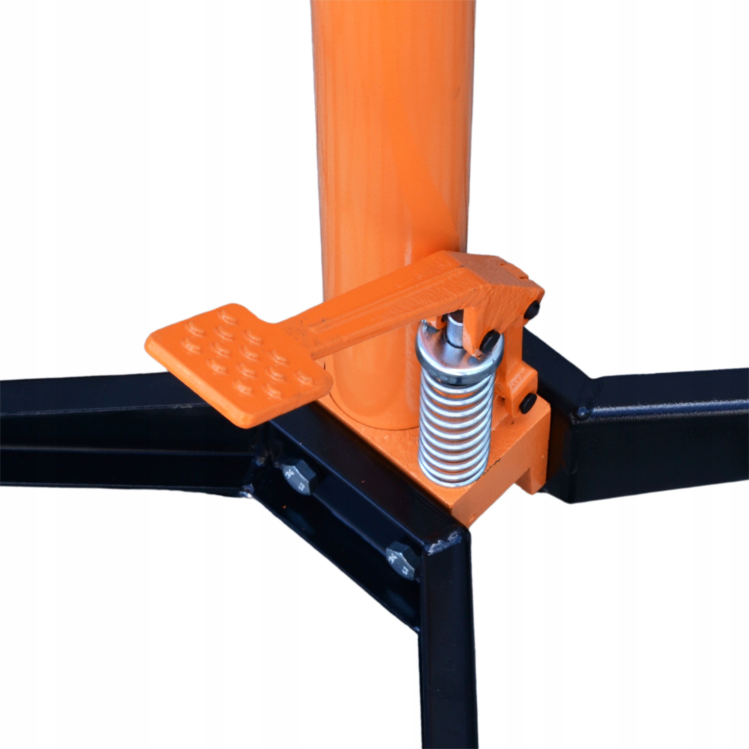 Podnośnik wyposażony jest w cztery skrętne, metalowe kółka, które umożliwiają łatwe manewrowanie nawet w ciasnych przestrzeniach warsztatowych. Zakres wysokości regulowany jest od 1100 mm do 1900 mm, co pozwala na dopasowanie urządzenia do różnorodnych zadań. Hydrauliczna pompa zapewnia płynne i bezproblemowe podnoszenie oraz opuszczanie.
