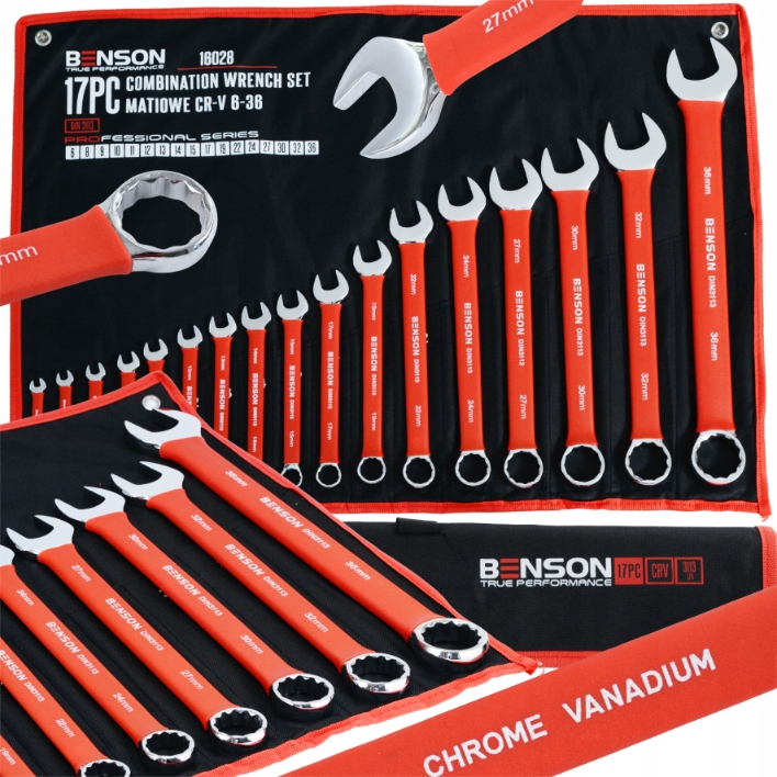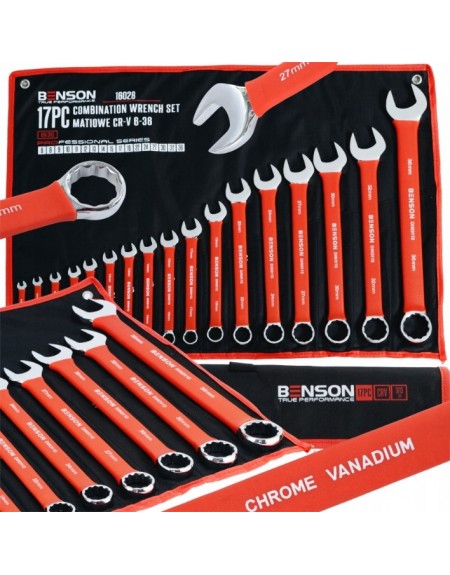 ZESTAW KLUCZY PŁASKO-OCZKOWYCH 6-36 BENSON BY BLACK 17 PCS DIN 3113