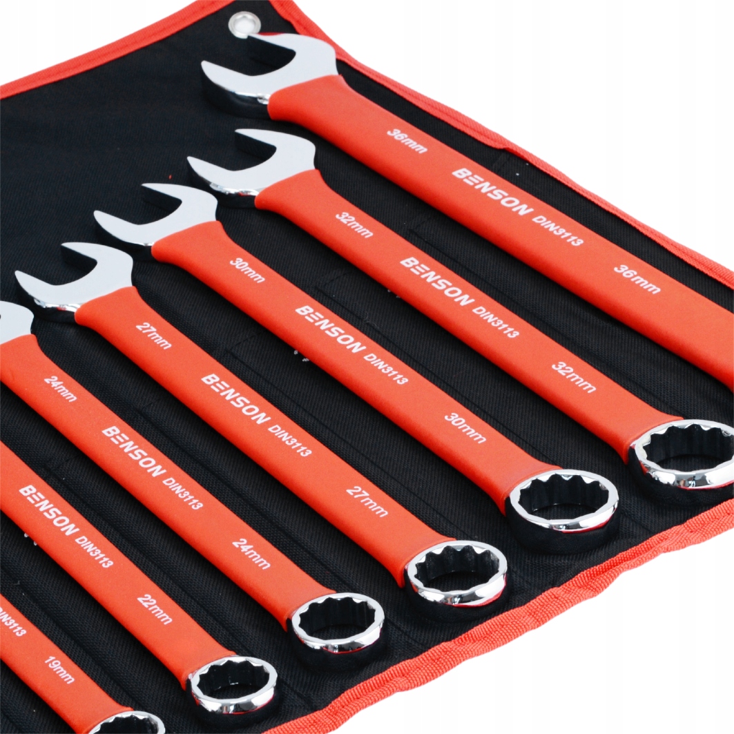 Wysokiej jakości klucze płasko-oczkowe renomowanej marki BENSON BY BLACK LTD ® wykonane ze stali chromo-vanadium.