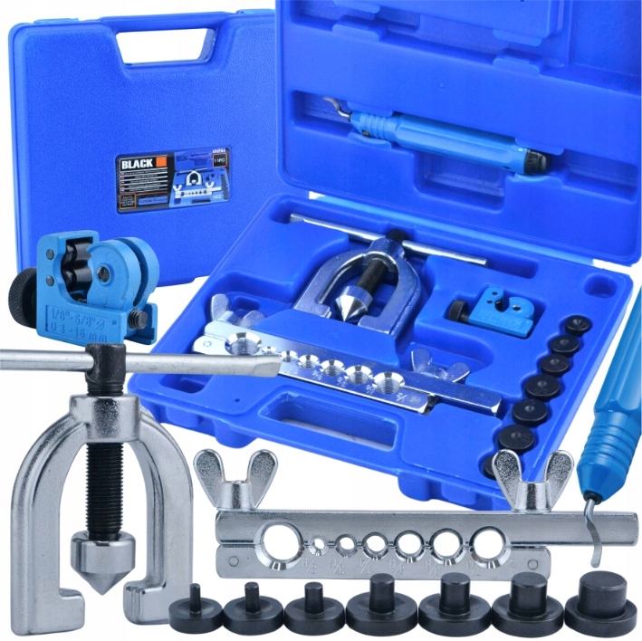 Zestaw do zarabiania przewodów hamulcowych marki Black to niezbędne narzędzie dla profesjonalistów z branży samochodowej, klimatyzacyjnej, hydrauliki oraz budownictwa. Wyposażony w praskę, obcinak, gradownik, uchwyt, walizkę i siedem różnych matryc 3/16" do 5/8", ten zestaw umożliwia zarabienie przewodów hamulcowych o najczęściej występujących rozmiarach. Solidna i wytwarzana z dbałością o szczegóły zarabiarka Black zapewnia niezawodność i trwałość w codziennym użytkowaniu. Doskonała jakość wykonania oraz uniwersalność zestawu sprawiają, że nadaje się do zastosowań w różnego rodzaju pojazdach dostępnych na rynku europejskim i amerykańskim. Fantastyczne narzędzie, które zwiększa efektywność pracy serwisanta oraz gwarantuje profesjonalne rezultaty.