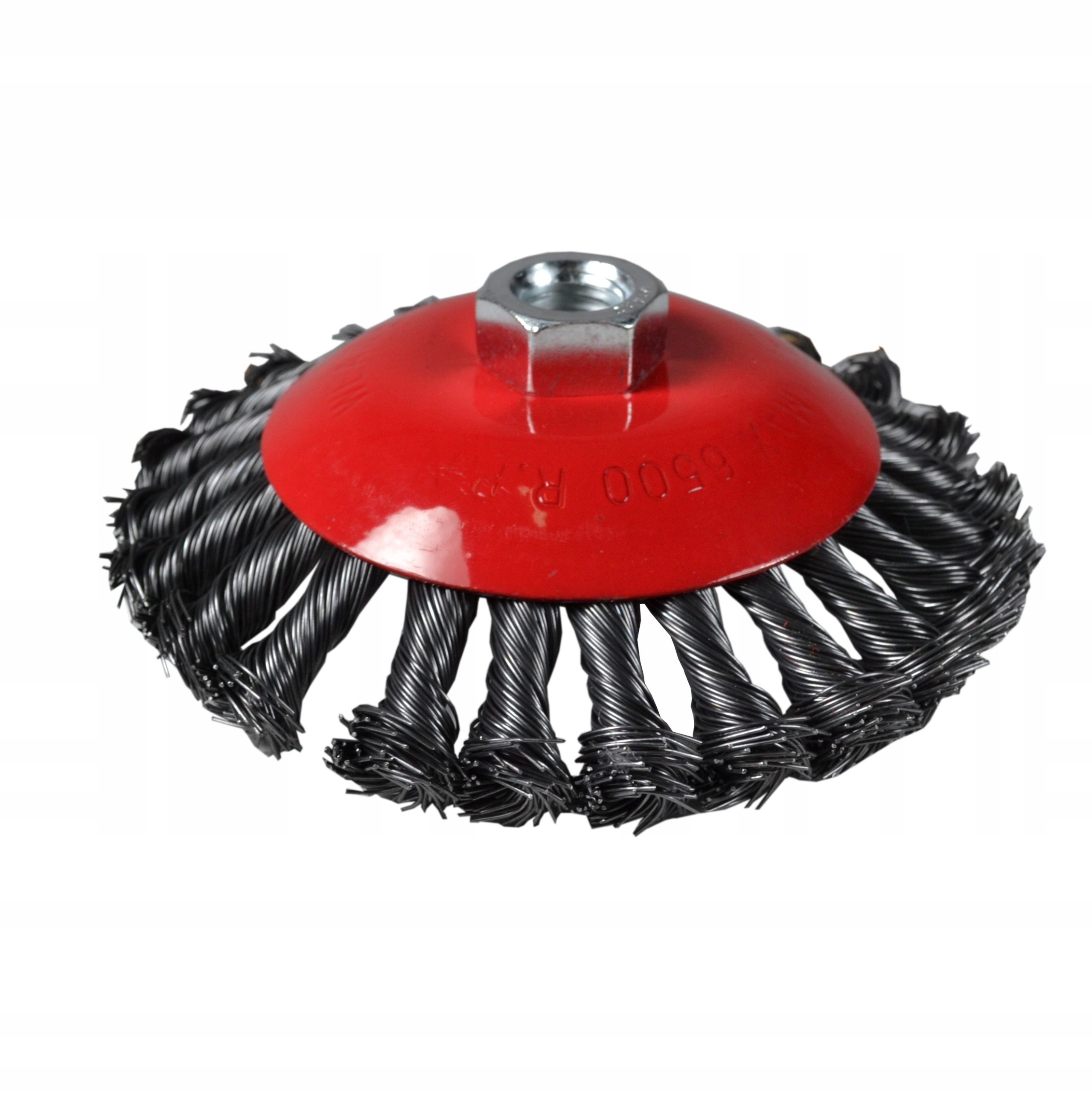 Szczotka obrotowa pleciona wykonana z wysokiej jakości hartowanego drutu stalowego. Idealnie nadaje się do ścierania rdzy oraz czyszczenia konstrukcji metalowych i stalowych,usuwania farb, oczyszczania spawów itp.