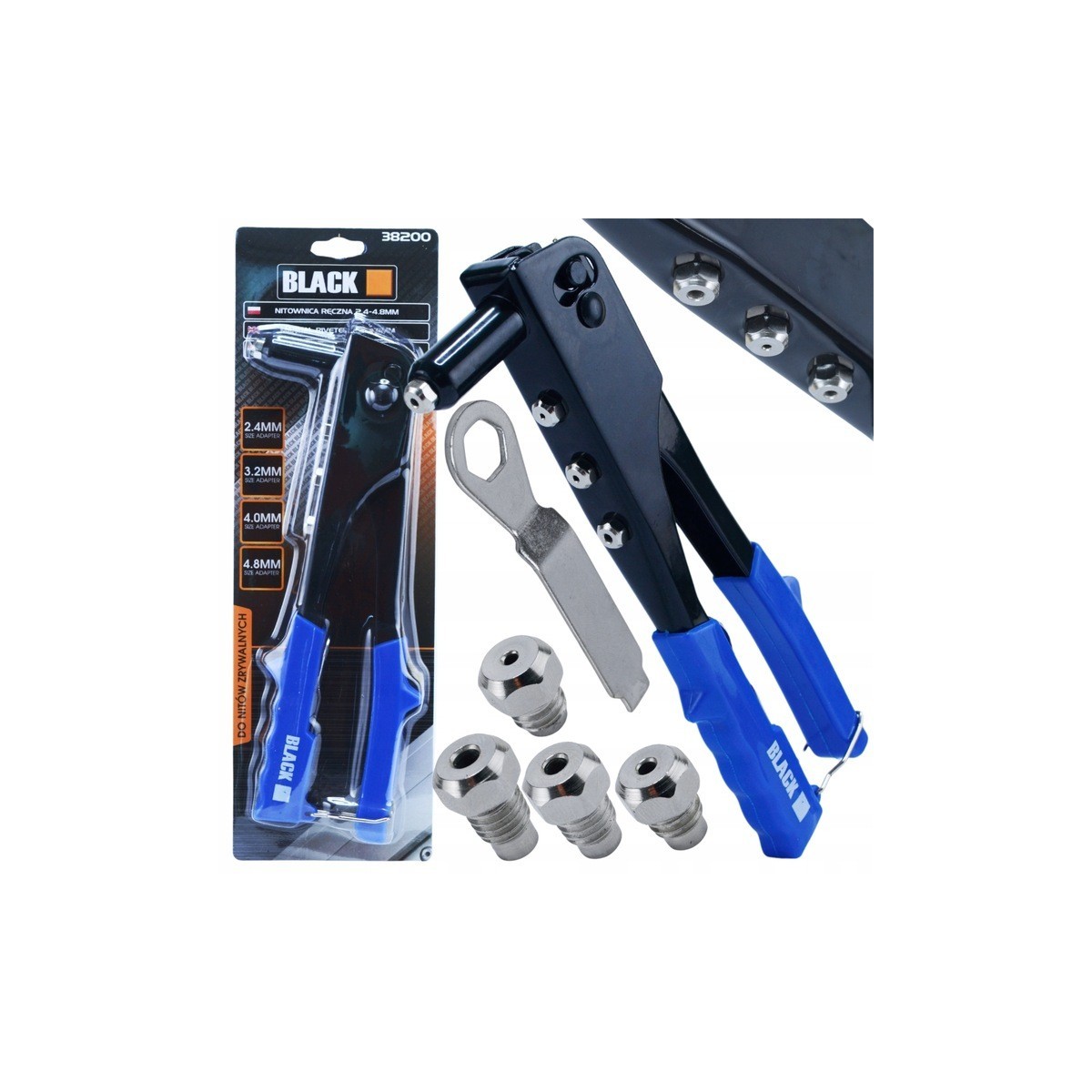Idealna nitownica dla profesjonalistów i majsterkowiczów! Ta solidna nitownica ręczna z zakresem średnic od 2.4 do 4.8 mm zapewni Ci precyzyjne i trwałe połączenia. Dzięki wysokiej jakości materiałom i gumowym nakładkom na ramionach, praca stanie się wygodna i efektywna. Nie musisz martwić się o dostęp do końcówek - klucz do wymiany jest zawsze pod ręką. Wybierz niezawodność i funkcjonalność z tą nitownicą 38200!