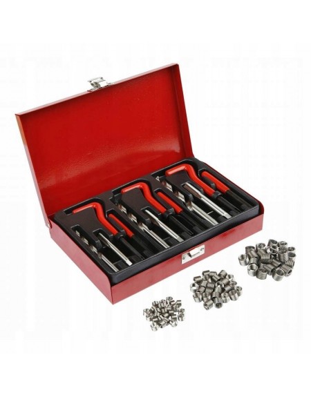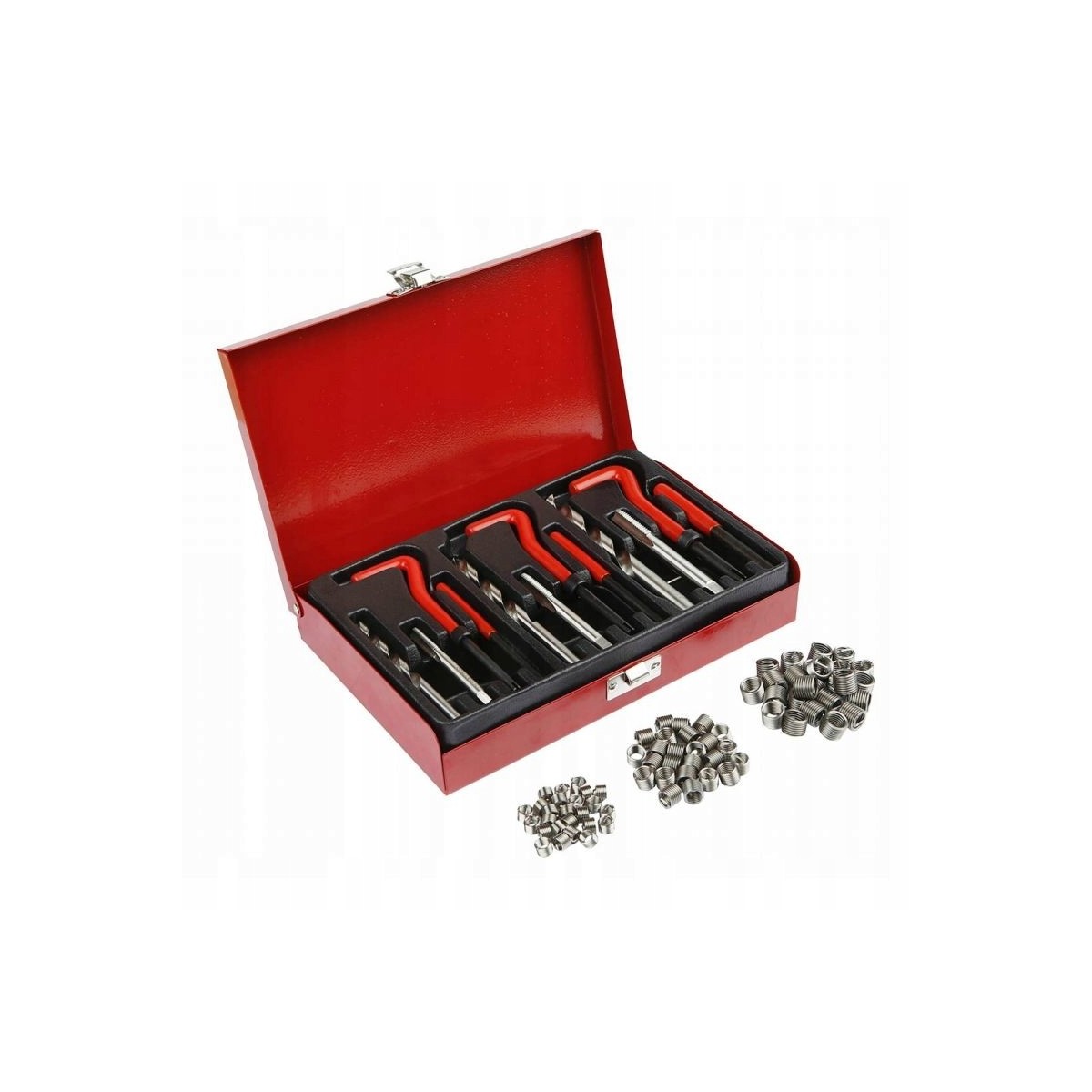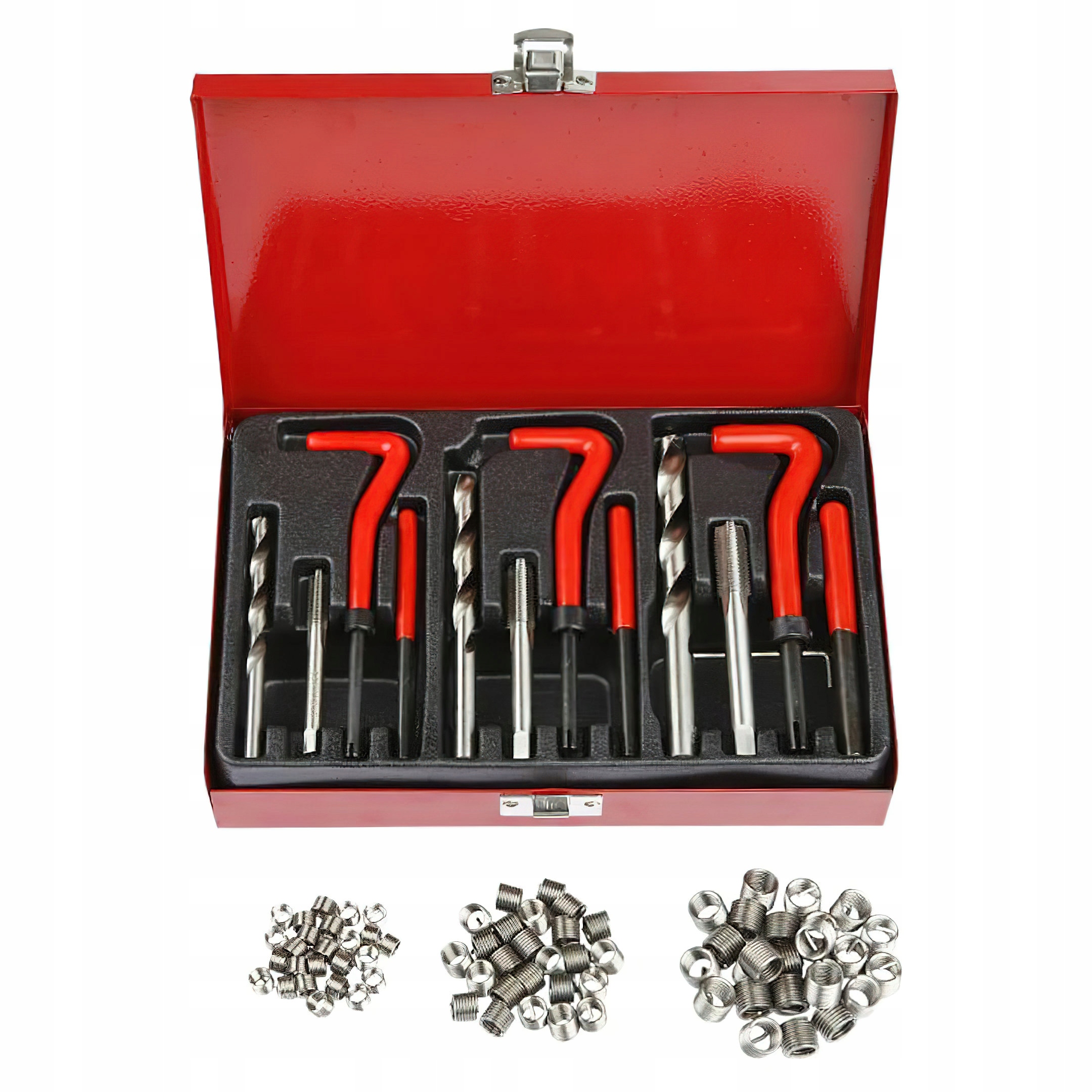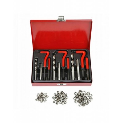 Zestaw służy do naprawy połączeń gwintowanych każdego rodzaju w większości materiałów. Dzięki dużej ilości elementów zestaw jest bardzo uniwersalny.