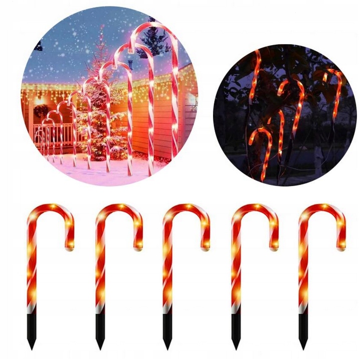 Tworzą świąteczny nastrój. Duże lampki w formie lasek cukrowych będą fantastycznie prezentować się na Twoim podjeździe, chodniku, trawniku lub na ścieżce, i będą świetnie wyglądać z ulicy, stanowiąc idealną dekoracją świąteczną na zewnątrz.