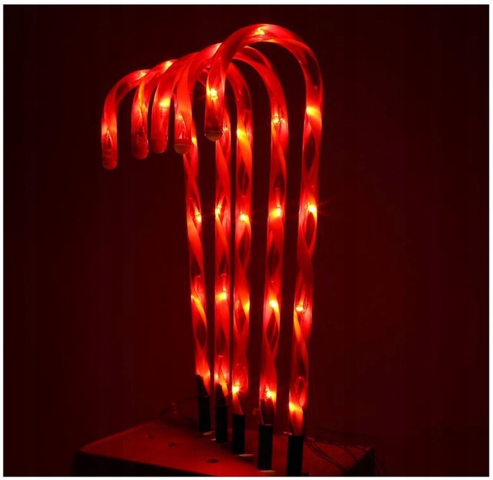 Zestaw świetlny składa się z 6 lasek cukrowych led ( 70 cm ) wraz z szpikulcami do wbicia w ziemię