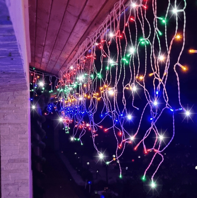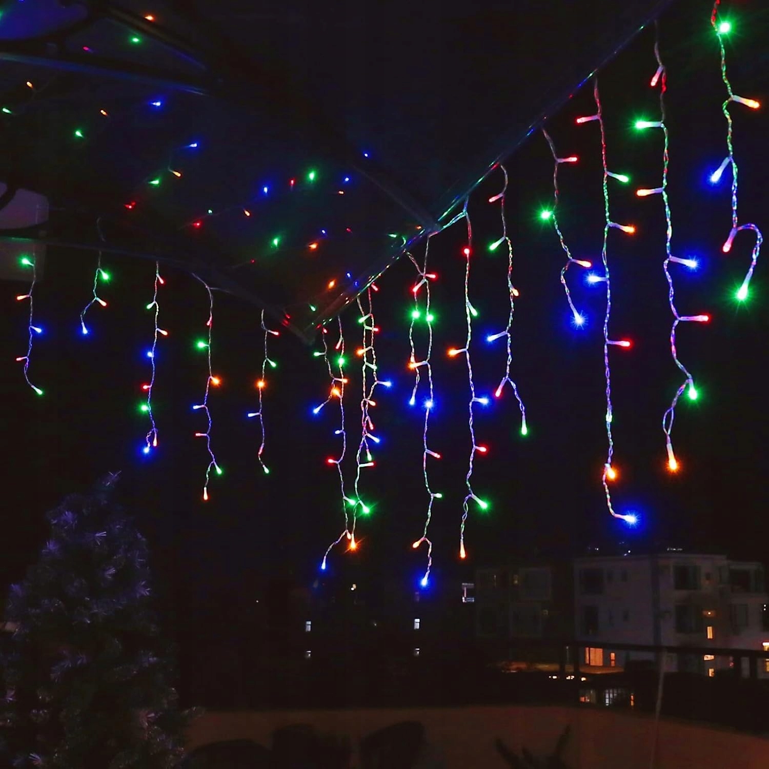 ✨Sople - Lampki Kurtyna świetlna z 200 diodami LED mix kolory, przeznaczone do użytku wewnętrznego, jak i zewnętrznego. Lampki posiadają programator, który oferuje 8 różnych trybów świecenia, co pozwala na dostosowanie efektów świetlnych. W przypadku montażu lampek na zewnątrz, zaleca się dodatkowe zaizolowanie programatora w celu zabezpieczenia przed warunkami atmosferycznymi (dłuższa żywotność i bezpieczne stosowanie lampek). Lampki posiadają dodatkowe gniazdo przedłużające na końcu łańcucha dzięki czemu możliwe jest połączenie kilku zestawów ze sobą (tylko tego samego typu).
