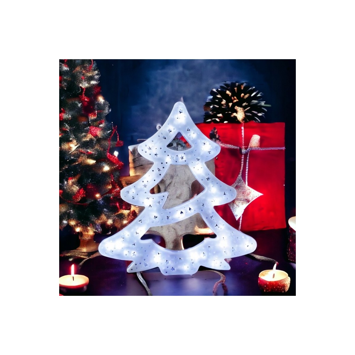 Ta dekoracja Bożonarodzeniowa to niesamowity element dekoracyjny Twojego otoczenia. Wiesz udekorowane nią okno lub ściana doda elegancji i szyku każdemu pomieszczeniu, a barwa światła wydobywająca się z ozdoby sprawi, ze klimat świąt udzieli się każdemu przebywającemu w jej otoczeniu.