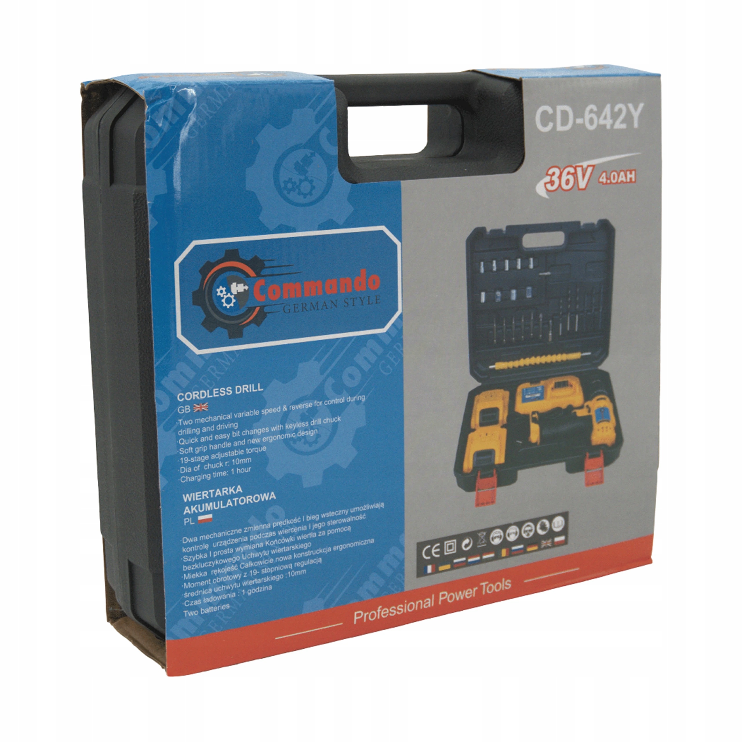 Wiertarko-Wkrętarka Akumulatorowa 36V 4.0Ah – 2 Akumulatory, 19-Stopniowy Moment, Szybkie Ładowanie 1h