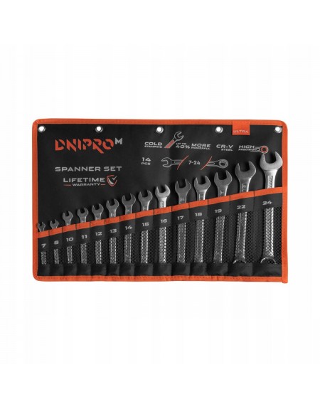 Zestaw zawiera klucze o długości od 45 do 112 mm.