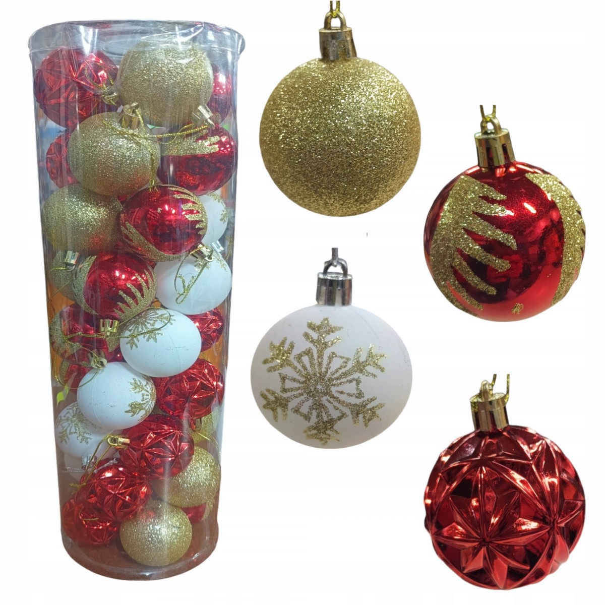 Zestaw bombek choinkowych składający się z 36 szt. bombek o średnicy 5 cm,