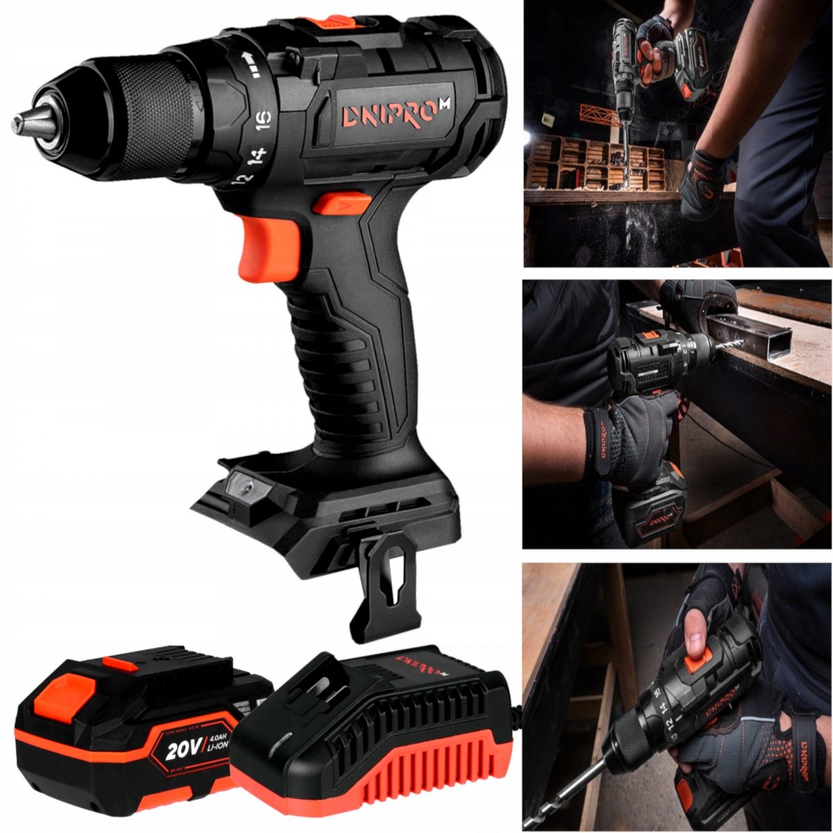 WIERTARKO WKRĘTARKA BEZSZCZOTKOWA MARKI DNIPRO-M MODEL CD-200BC ULTRA + AKUMULATOR 4AH DNIPRO + ŁADOWARKA FC-230 DNIPRO