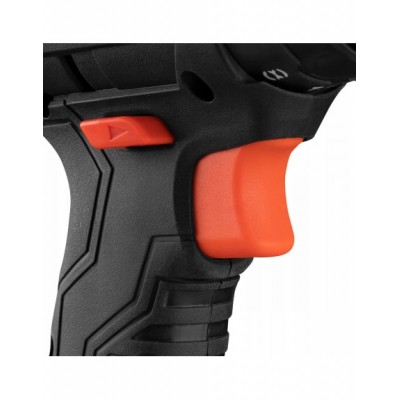 Przycisk ma uszczelnienia labiryntowe i gumowe pierścienie, co zwiększa niezawodność śrubokręta i zapobiega jego uszkodzeniom nawet w warunkach dużego zapylenia.