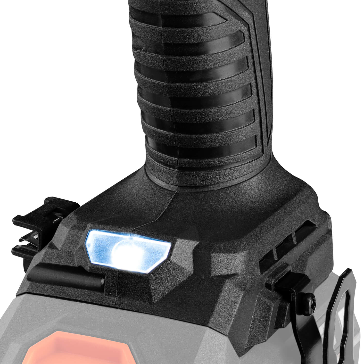 • gumowa powłoka akumulatora sprawia, że narzędzie jest bardziej stabilne na powierzchniach i eliminuje możliwość wyślizgnięcia się z rąk;