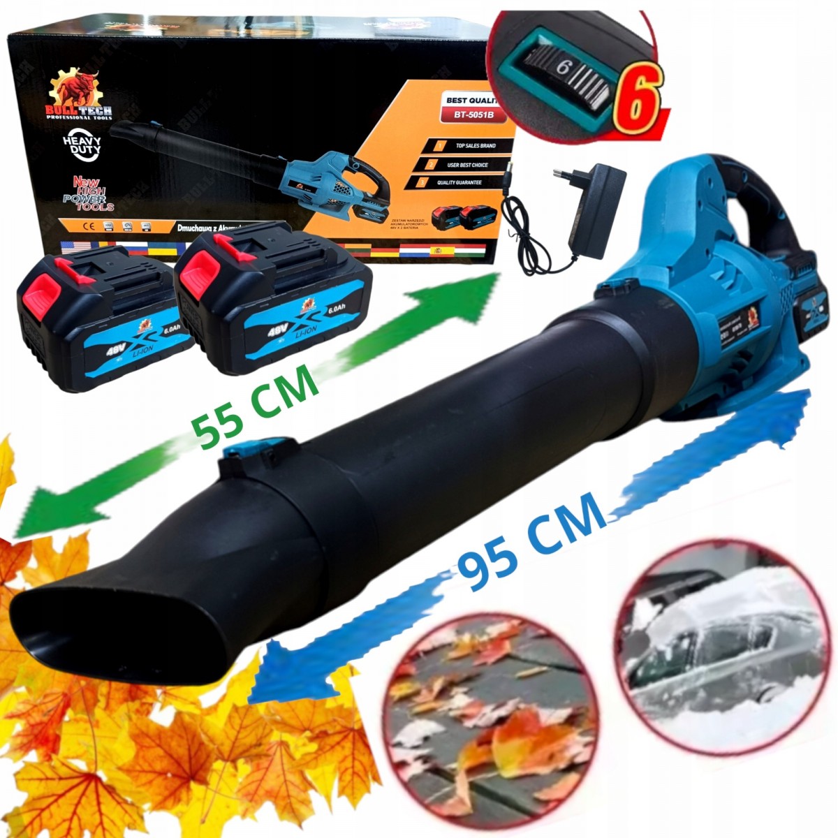 Wentylator dużej mocy zapewnia dużą wydajność przepływu i maksymalną prędkość przepływu osiągającą prędkość 245 km/h, umożliwiając tym samym sprzątanie również dużych terenów.