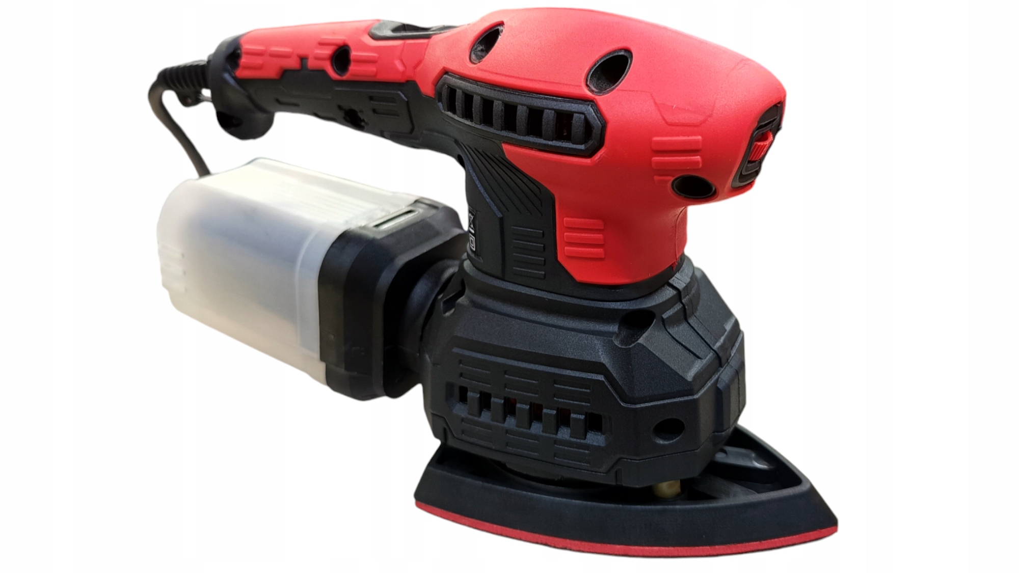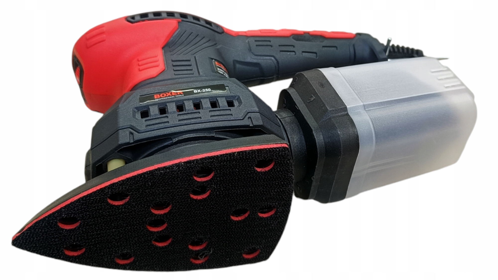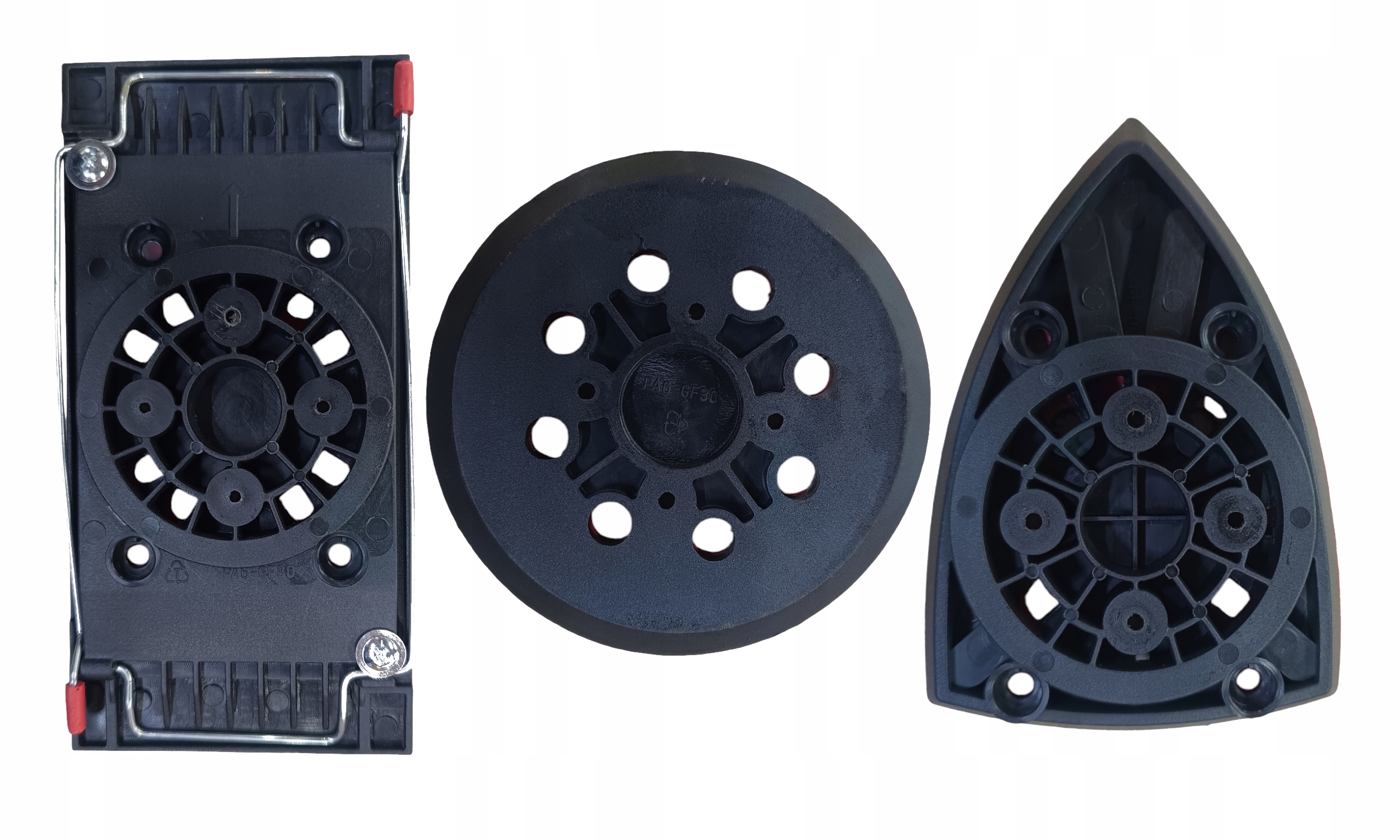 W celu szlifowania wielofunkcyjnego - mimośrodowego i oscylacyjnego szlifierka posiada możliwość zamontowania 3 różnych padów szlifierskich (Orbitalny - do szlifowania płaskich powierzchni; Trójkątny - do szlifowania powierzchni nierównych; Prostokątny - do szlifowania narożników i krawędzi).
