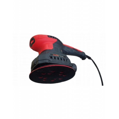 Urządzenie współpracuje z materiałem ściernym o średnicy 125mm z mocowaniem na rzep oraz ośmioma otworami odpylającymi.