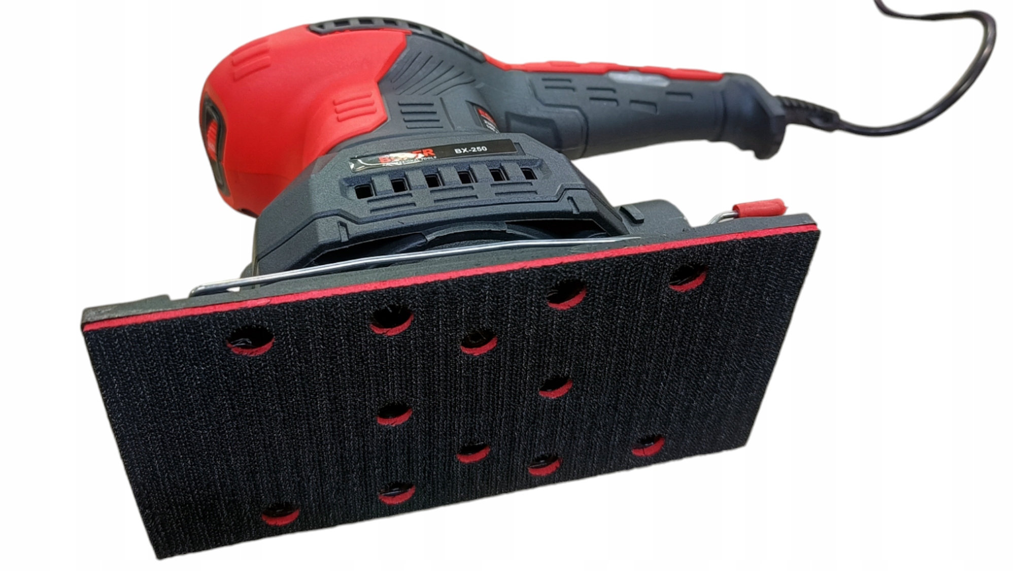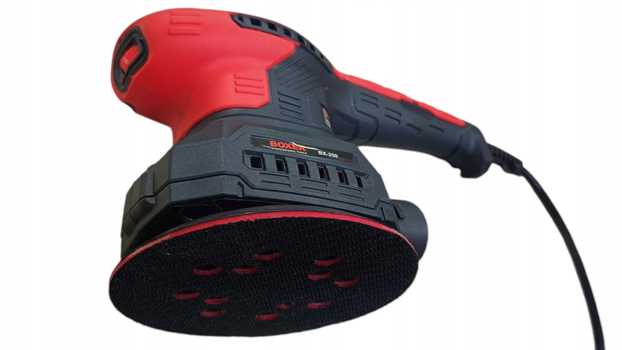 Dla maksymalnego komfortu i bezpieczeństwa użytkowania, szlifierka została wyposażona w specjalny antypoślizgowy uchwyt pokryty gumą. Ruch mimośrodowy zapewnia równomierne ścieranie obrabianego materiału, bez bruzd i nierówności.