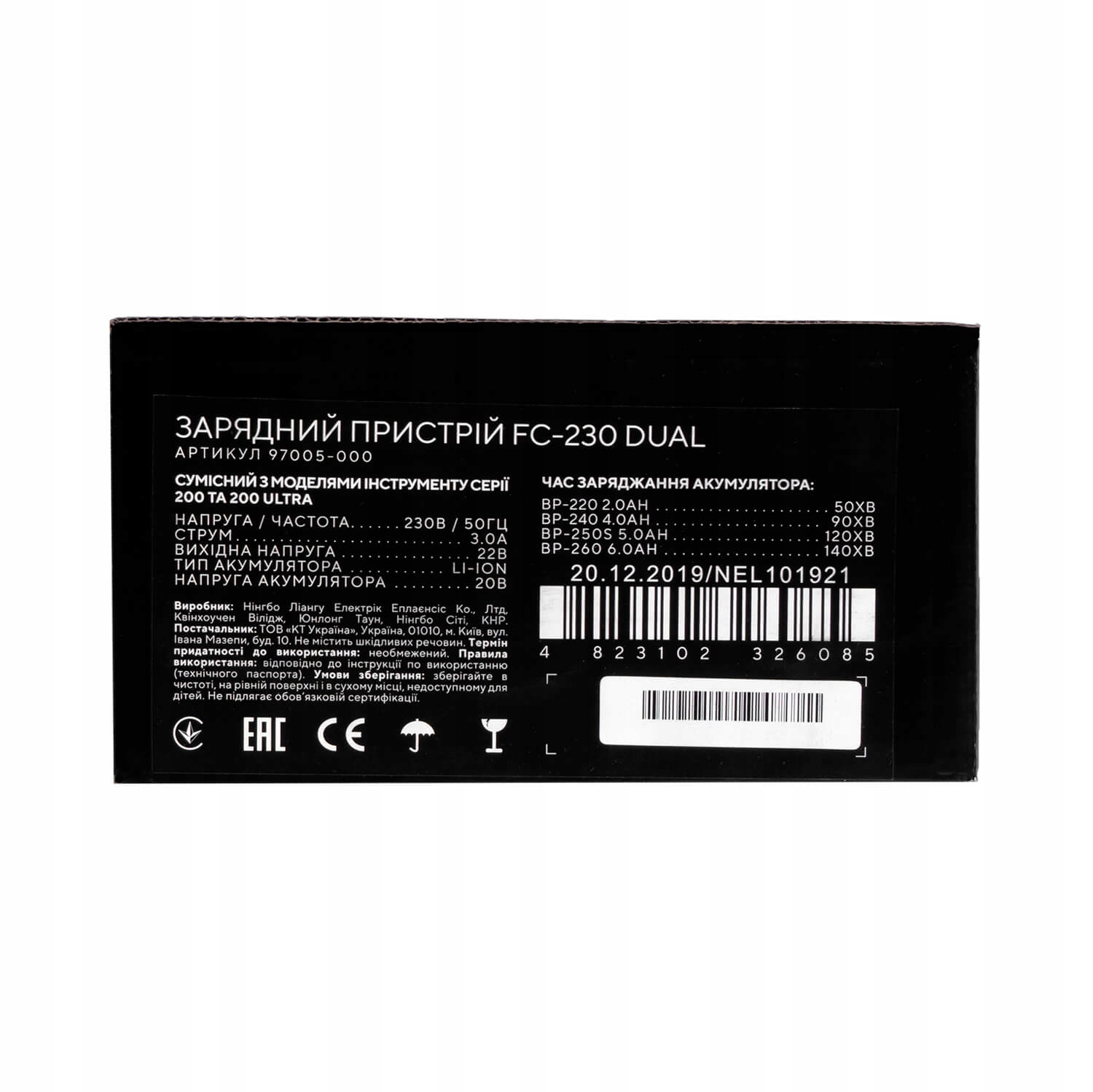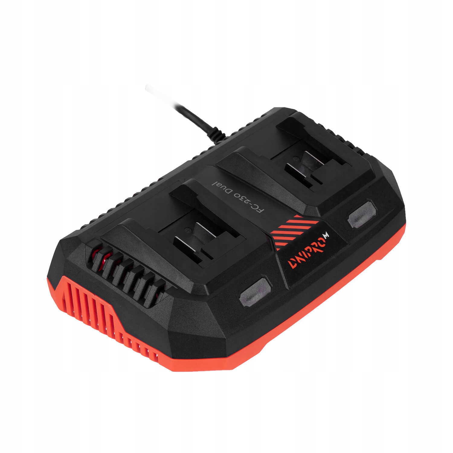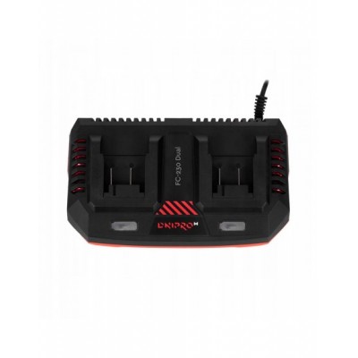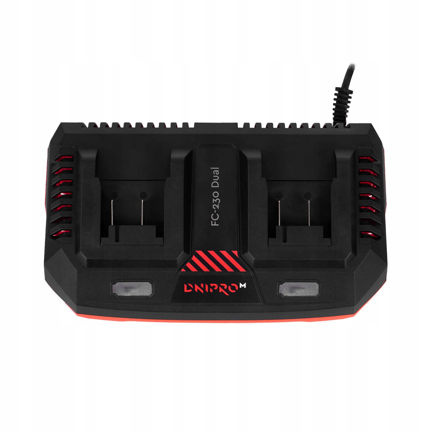 Ładowarka Dnipro-M FC-230 Dual posiada dwa gniazda ładowania akumulatorów 20 V. Dzięki prądowi wyjściowemu 3 A i kondensatorom z filtrem pojemnościowym może ładować akumulatory 2, 4, 5 i 6 Ah w tempie, które jest średnio o 20% szybsze niż czas rozładowania przy obciążeniu znamionowym. To najlepszy wybór dla prawdziwego profesjonalisty.