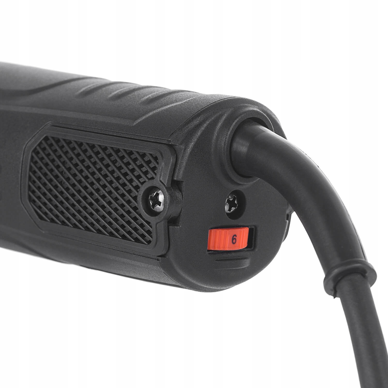 Zwężający się kształt obudowy narzędzia ułatwia jego trzymanie, a wraz z dodatkowym dwupozycyjnym uchwytem pokrytym gumą, osłoną szybkiej wymiany i gumowym kablem o długości 3 m gwarantują poczucie komfortu podczas długich godzin pracy.