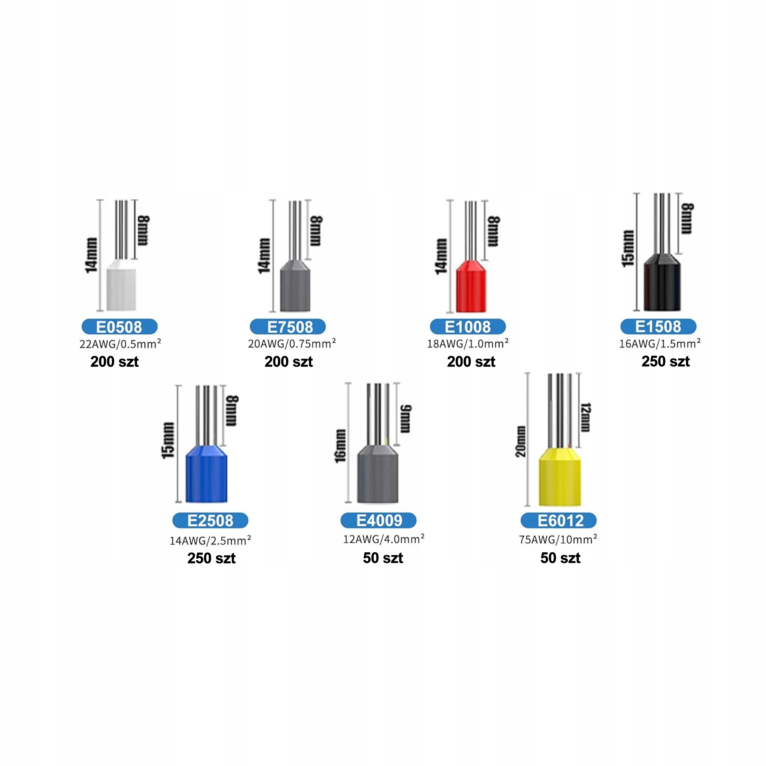 ✔️ 200 sztuk końcówek do kabli E7508 20 AWG 0,75 mm2