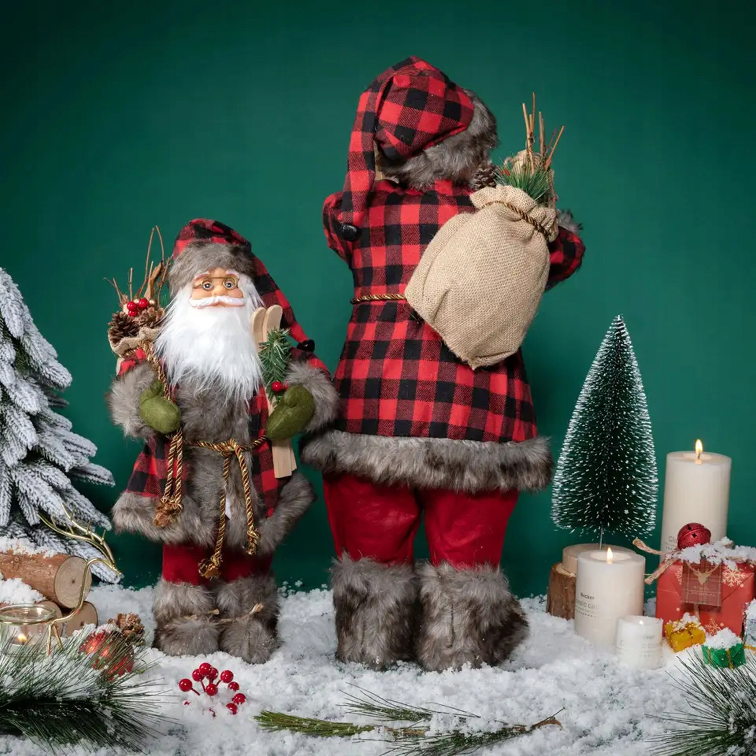 ❤️ Różne możliwości rozmieszczenia: Figurka Mikołaja może być umieszczona na podłodze przy choince, tworząc harmonijną kompozycję z drzewkiem.