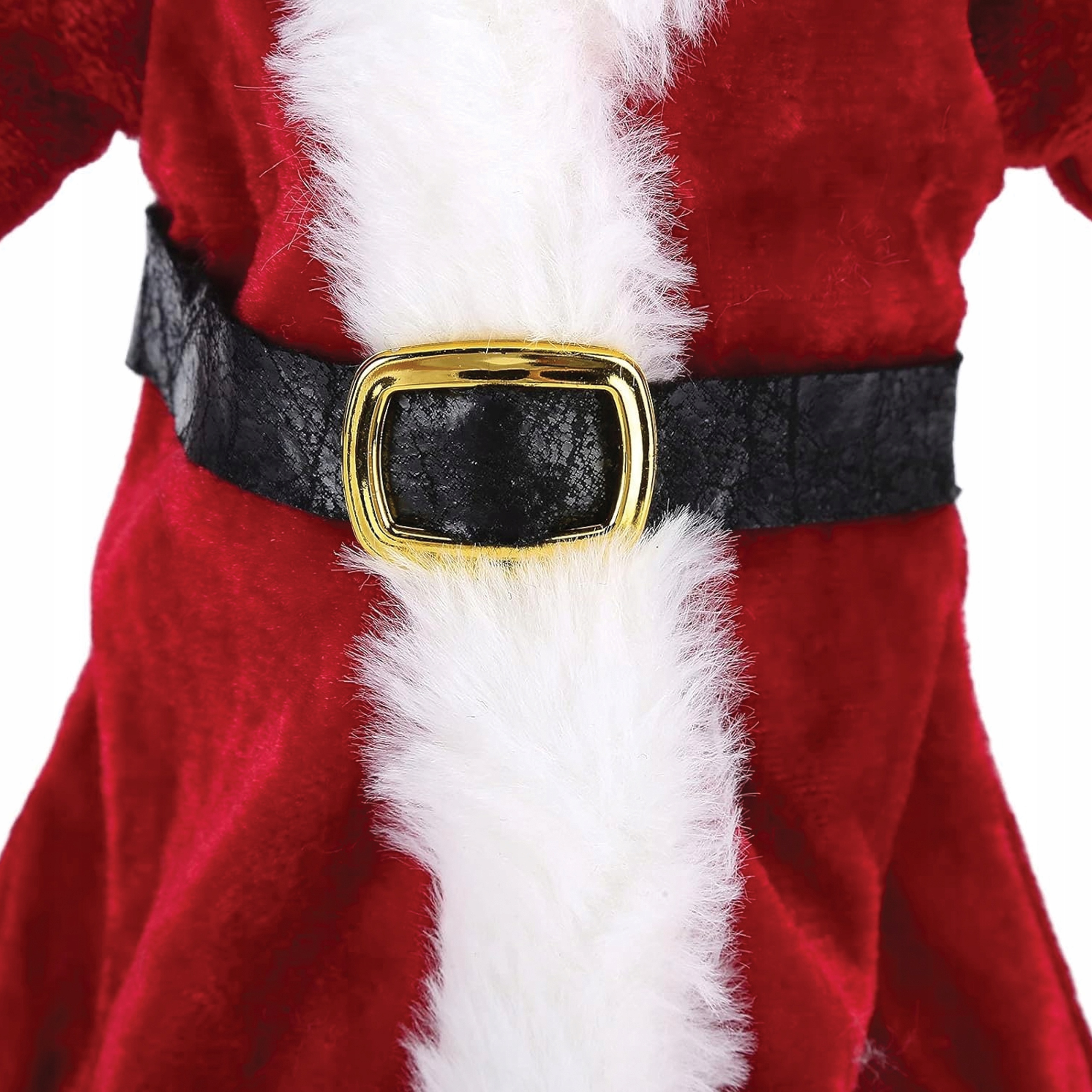 Ubranko wykonane jest z wysokiej jakości materiałów, które naśladują strój Świętego Mikołaja – czerwony płaszcz z białym futerkiem oraz czarny pasek.